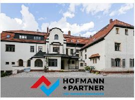 BeschreibungDie Zweiraumwohnung befindet sich im Erdgeschoss einer denkmalgeschützten Villa auf dem 8.320 m² großen, vollständig umfriedeten Anwesen. Über das elektrische Tor erreichen Sie den komplett mit kleinen Granitsteinen gepflasterten Hofbereich....