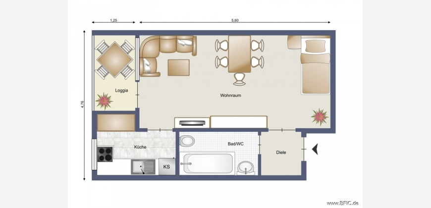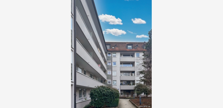 Zum Verkauf steht ein helles, bezugsfreies 1-Zimmer-Apartment mit ca. 30,55 m² Wohnfläche im 4. Obergeschoss eines gepflegten Mehrfamilienhauses mit 68 Wohneinheiten, Baujahr 1966. Das Gebäude verfügt über einen Personenaufzug. Die Wohnung ist sofort verfügbar und eignet sich für Singles, Berufseinsteiger oder als Zweitwohnung in München. Der Wohnraum ist mit Laminatboden ausgestattet und wird über eine große Fensterfront nach Südwesten belichtet. Von hier gelangt man direkt auf die Südwest-Loggia mit ca. 3 m², die Abendsonne und einen Blick auf die Zwillingstürme der Pfarrkirche St. Franziskus bietet. Die Küche ist als separater Raum angelegt, mit hellgrauem Fliesenspiegel und pflegeleichtem Boden — Platz für eine individuelle Einbauküche ist vorhanden. Das Tageslichtbad verfügt über Wanne, Dusche, WC und Waschbecken, die Wände sind hell marmoriert gefliest, eine elektrische Lüftung ist vorhanden. Die kompakte Diele erschließt alle Räume. Die Raumhöhe bemisst mindestens angenehme 2,52 m. Beheizt wird die Wohnung über eine Gas-Zentralheizung, der Wärmeerzeuger wurde im Jahr 2000 erneuert. Ein Kellerabteil und ein Kfz-Stellplatz gehören nicht zur Wohnung — angesichts der fußläufigen Nahversorgung und der sehr guten ÖPNV-Anbindung ist beides in dieser Lage gut verzichtbar.Die Hans-Mielich-Straße liegt in Top-Lage von Untergiesing, einem der gefragtesten Wohnviertel im Süden Münchens, direkt an der Pfarrkirche St. Franziskus. Supermärkte, Bäckereien, Apotheken, Ärzte und Schulen sind fußläufig erreichbar. Das Isarufer mit seinen Grünflächen liegt wenige Gehminuten entfernt, der Tierpark Hellabrunn ist in unter 15 Minuten zu Fuß erreichbar. Mehrere Bus- und Tramlinien sowie die U-Bahn (U1/U2) Candidplatz binden die Wohnung schnell an die Münchner Innenstadt an - der Hauptbahnhof ist in rund 6 Minuten erreichbar.