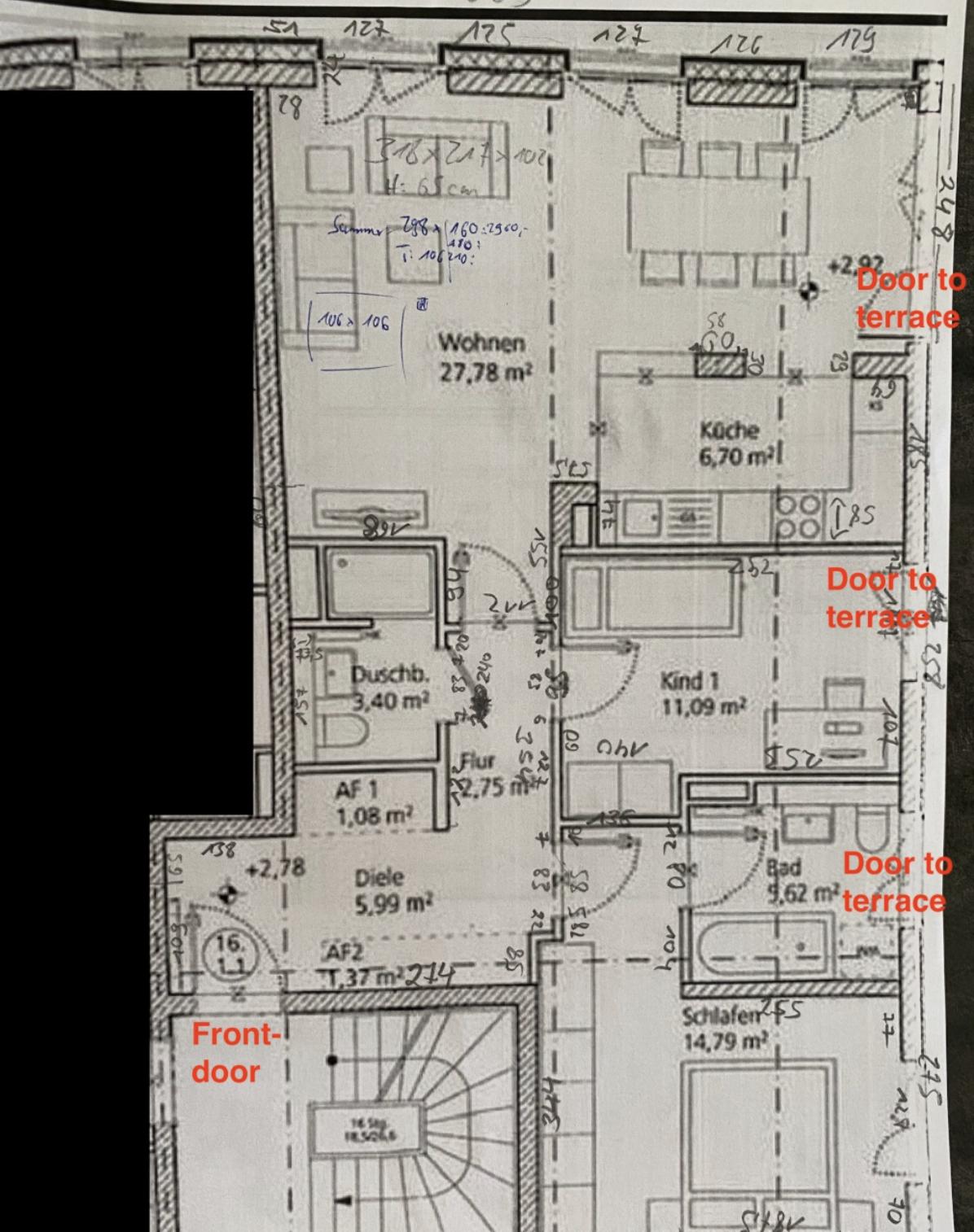 Diese charmante Wohnung bietet eine perfekte Wohlfühlatmosphäre für Singles, Paare oder eine kleine Familie. Die Wohnfläche beträgt 80 Quadratmeter und es gibt eine großzügige Terrasse. Die Wohnung hat insgesamt drei Zimmer, einschließlich einem Schlafzimmer mit einem privaten Badezimmer, das über eine Badewanne mit Dusche, ein Fenster und einen direkten Zugang zur Terrasse verfügt. Ein weiteres Zimmer kann entweder als Gästezimmer oder als Kinderzimmer genutzt werden und hat einen kleinen Einbauschrank sowie Zugang zur Terrasse. Das Wohnzimmer ist mit einer integrierten Küche ausgestattet und bietet ebenfalls Zugang zur Terrasse. Zusätzlich gibt es ein zweites Badezimmer mit WC, welches als Gästebad dient und eine Dusche hat. Der Flur verfügt über einen praktischen Einbauschrank und ein Waschtrockner ist im Badezimmer vorhanden. Alle Zimmer sind mit Eichenparkett ausgestattet, während das Badezimmer in einem hellen Grauton gefliest ist. Die Immobilie befindet sich in grüner Lage in Berlin mit zahlreichen Freizeitmöglichkeiten. Der S- Bahnhof Mexikoplatz ist fußläufig in 11 Minuten zu erreichen. Die Freie Universität Berlin (Veterinärmedizin) ist 2 Gehminuten entfernt. In Laufnähe gibt es verschiedene Restaurants, Ärzte, Bäckereien, Cafés und einen Supermarkt. Mehrere Grün- und Parkanlagen, Fitnessstudios, zwei Museen, eine Buchhandlung und eine Bibliothek finden Sie ebenfalls vor Ort. Ideale Lage zum Spazieren, Fahrradfahren und Reiten.
