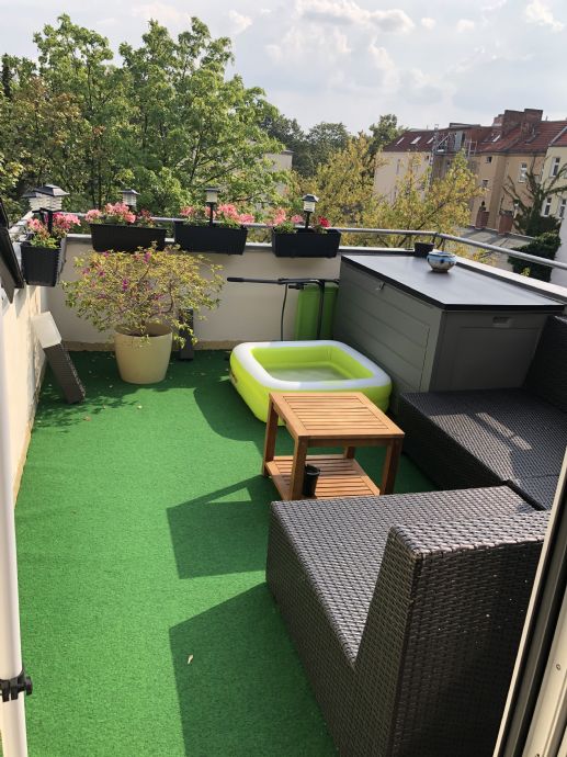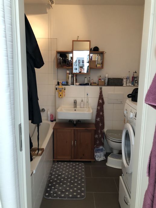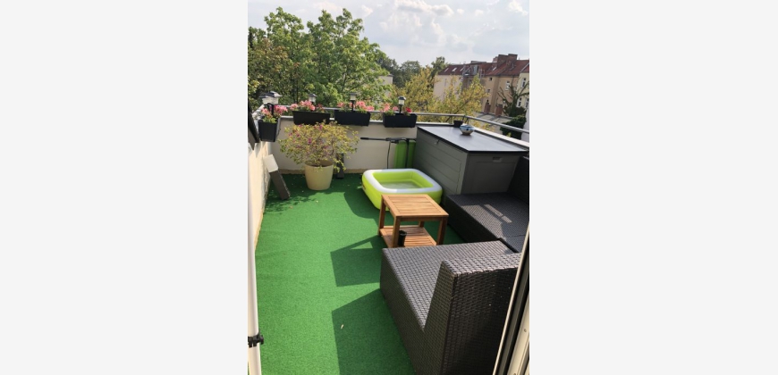 2 Zimmer-Wohnung mit Terrasse Optional kann zusätzlich ein PKW - Stellplatz auf dem abgeschlossenen Grundstück für 30,00 Euro/mtl. gemietet werden. Die Wohnung befindet sich im Dachgeschoss. Kein Aufzug aber für junge Leute kein Problem. Entspricht dem 3. OG. Diese Wohnung bietet eine gute Ausstattung mit Küche und Bad. Die Wohnung verfügt über ca. 58 qm. Busse, S-Bahn und zahlreiche Einkaufsmöglichkeiten sind in 5 oder 10 Minuten fussläufig erreichbar.
