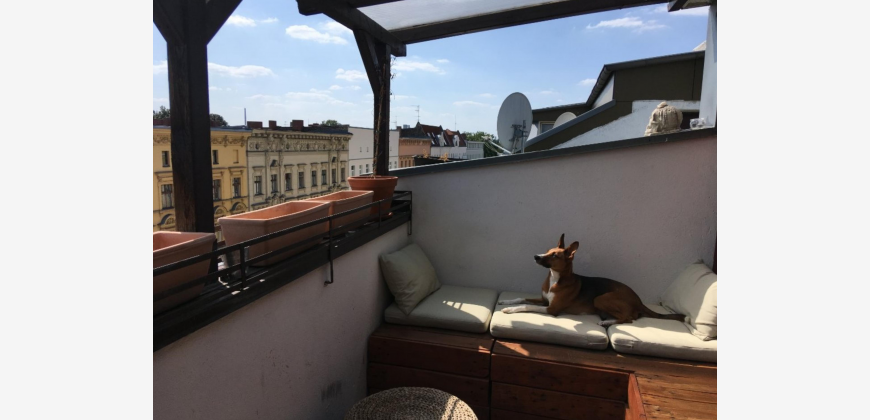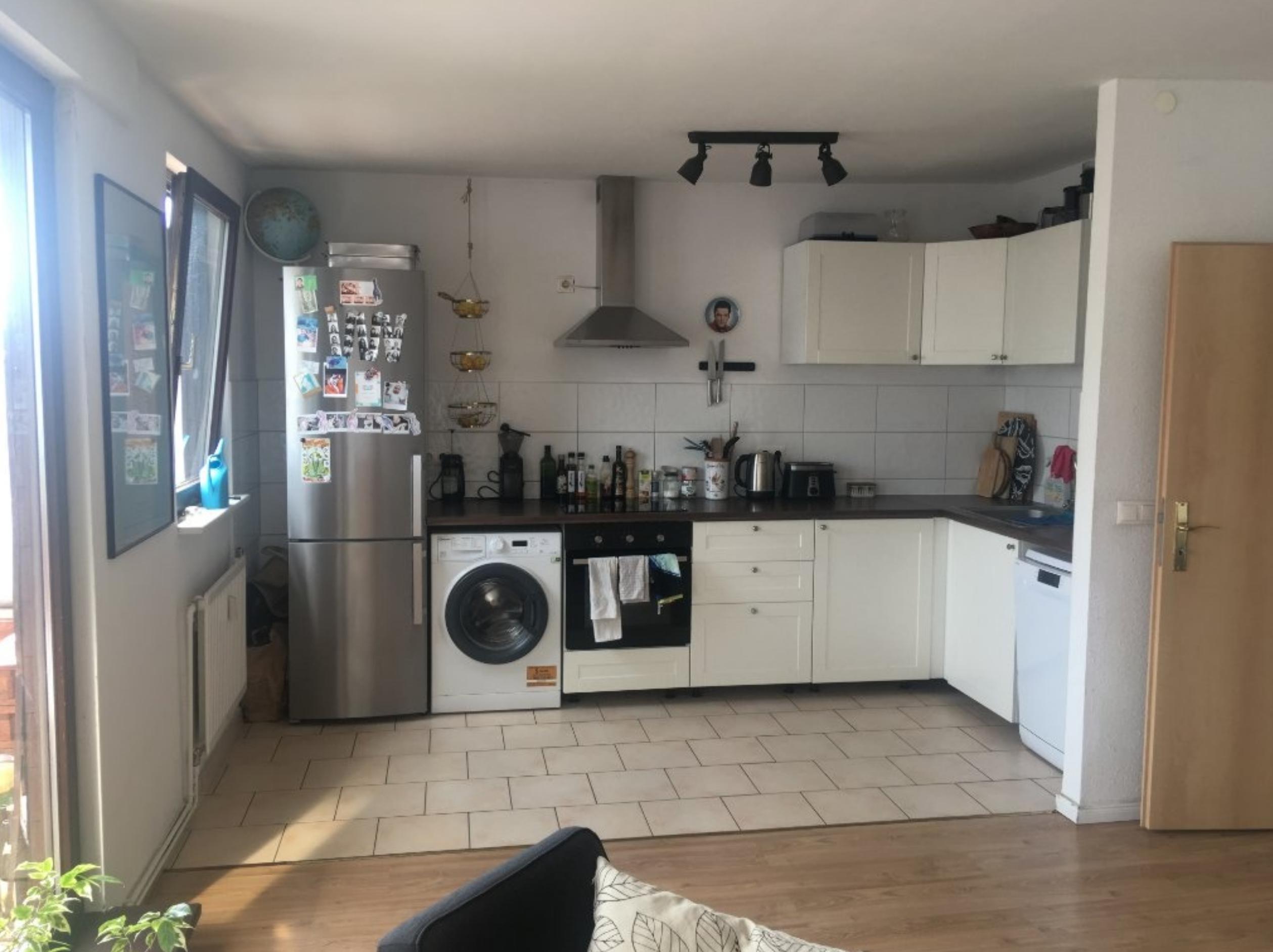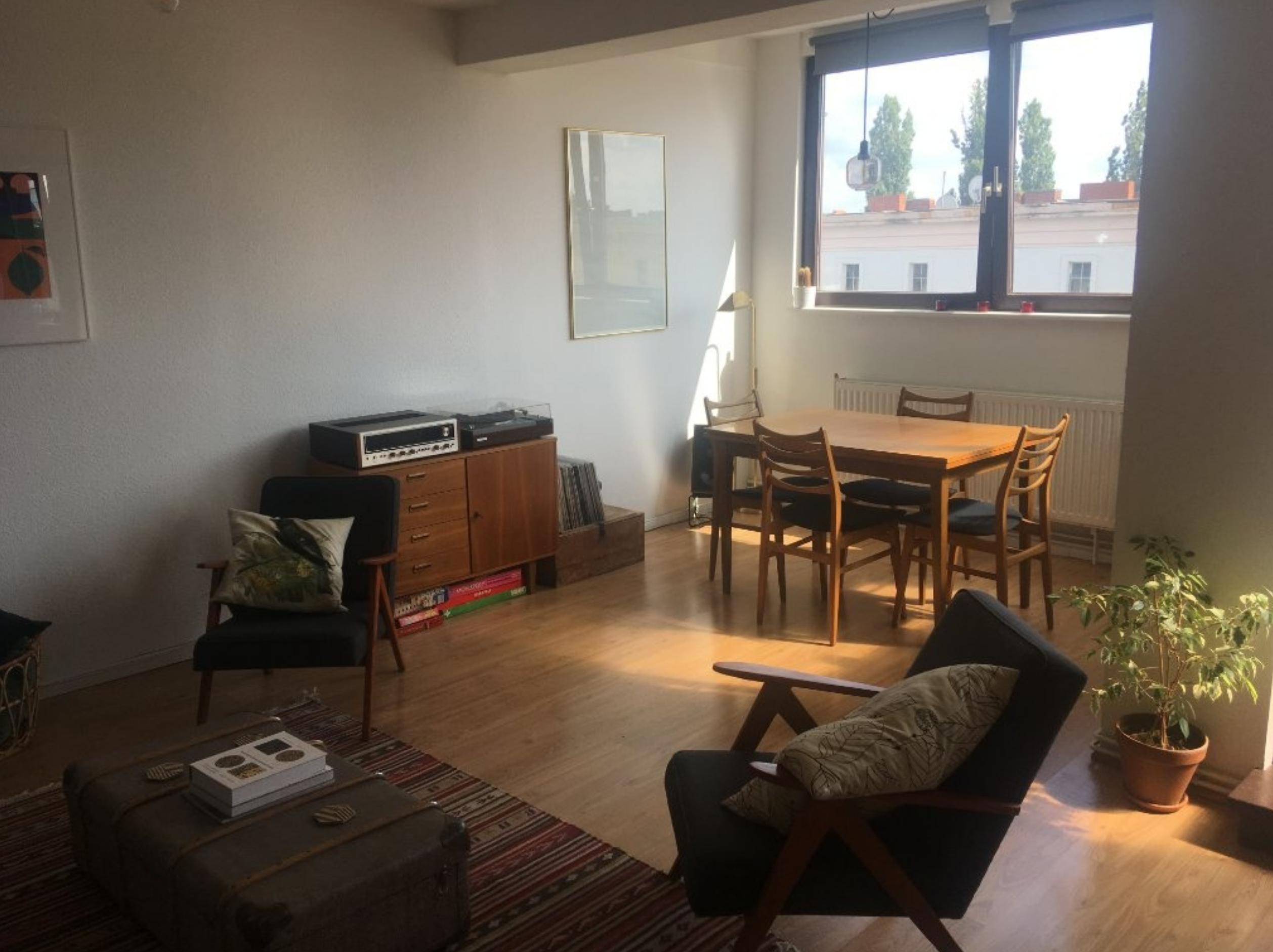 Die Wohnung befindet sich im obersten Stockwerk, ist also hell, geräumig und verfügt über eine große Terrasse. Ein offener Wohn- und Essbereich mit viel Platz für Unterhaltung. Das Schlafzimmer liegt zum Innenhof, so dass es abends ruhig ist. Die Wohnung hat drei Zimmer und eine große Terrasse, perfekt für Sommerabende. Es gibt auch einen kleineren zimmer (12qm), der nicht abgebildet ist und sich perfekt als Büro oder Kinderzimmer eignet. Die Nachbarschaft ist lebhaft, lebendig und bietet eine Fülle von Verpflegungsmöglichkeiten. Cafés, Restaurants und jede Menge türkisches und arabisches Essen in der Gegend! Es gibt auch viele Supermärkte und Geschäfte im Umkreis von 5 Gehminuten. Die Wohnung ist sehr gut an die öffentlichen Verkehrsmittel angebunden. Sowohl U- als auch Oberirdische Bahnhöfe sind in wenigen Minuten zu Fuß erreichbar. Bitte kontaktieren Sie mich direkt für weitere Details! The apartment is on the top floor so it is light, spacious and has a large terrace. An open plan living and dining area with plenty of room for entertaining. The bedroom faces the inner courtyard so it is quiet during the evenings. The apartment has three room and a large terrasse, perfect for summer evenings. There is also a smaller room off the bedroom which isn't pictured and is perfect as an office or childrens room. The neighborhood is vibrant, lively and boasts a plethora of food options. Cafes, restaurants and plenty of Turkish and Arabic food in the area! There are also many supermarkets and stores within in 5 minute walk. The apartment is very well connected to public transport. Both underground and overground train stations are a short walk away. Please contact me directly for more details!