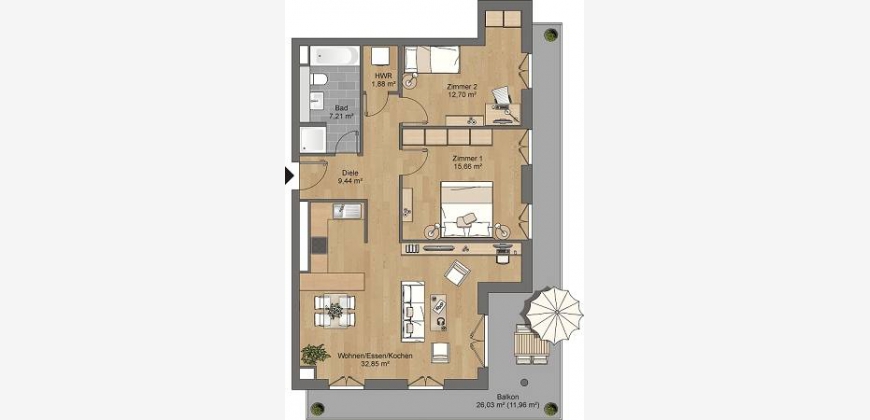 Moderne 3-Zimmer-Wohnung mit Terrasse und Tiefgaragenstellplatz