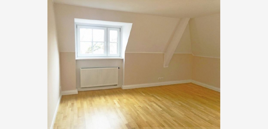 Die helle und gut geschnittene 3,5-Zimmer-Wohnung liegt im Dachgeschoss eines im Jahre 1938 errichteten, ensemblegeschützten Gebäudes. Die Wohnung ist durch die Dachschrägen, Dachfenster und Ihre Kassettentüren sowie die hochwertigen Einbauschränke sehr charakteristisch. Sie wurde 2012 komplett renoviert und ist somit auf dem neuesten Stand. Sie enthält neben einem hellen Badezimmer mit Badewanne auch ein separates WC, ein geräumiges Schlafzimmer sowie ein rund 20 m² großes Wohnzimmer. Ein ca. 9 m² großes Zimmer kann als Büro, zweites Schlafzimmer oder möglicherweise als Ankleideraum genutzt werden. Der große Koch- und Essbereich umfasst eine Küche, welche durch die moderne, offene Bauweise direkten Zugang zum Esszimmer und der separaten Speisekammer bietet. Das Highlight ist der wunderschöne Gemeinschaftsgarten, welcher durch zahlreiche Bäume, gepflegte Bepflanzung und Privatsphäre einen Ort zum Entspannen im Freien bietet. Die Wohnung liegt im beliebten Stadtteil Bogenhausen. Bogenhausen zählt zu einer der begehrten Wohngegenden Münchens. Es zeichnet sich durch viele Villen und großzügige Grünanlagen aus. Der Prinzregentenplatz ist fußläufig in ca. 3 Minuten erreichbar, somit ist eine schnelle Anbindung durch die U-Bahn an das öffentliche Verkehrsnetz gegeben. Die Infrastruktur ist in diesem Stadtteil ausgezeichnet. Einkaufsmöglichkeiten, medizinische Versorgung und Restaurants befinden sich in unmittelbarer Nähe.