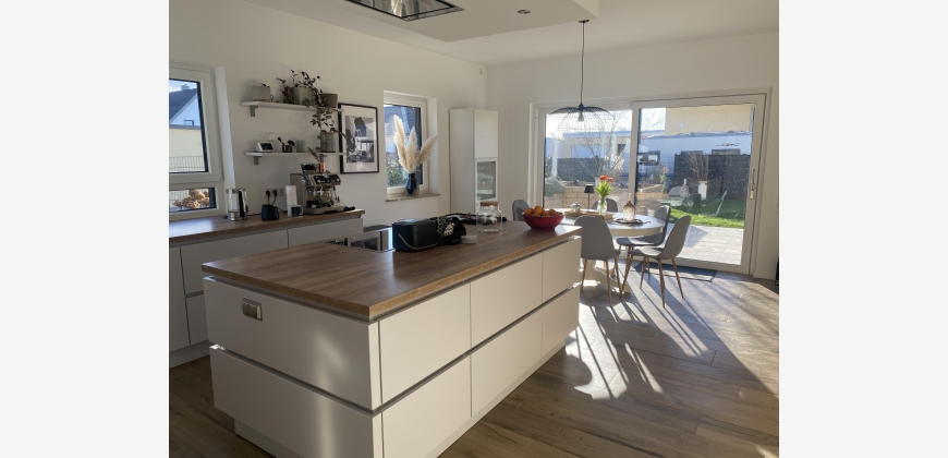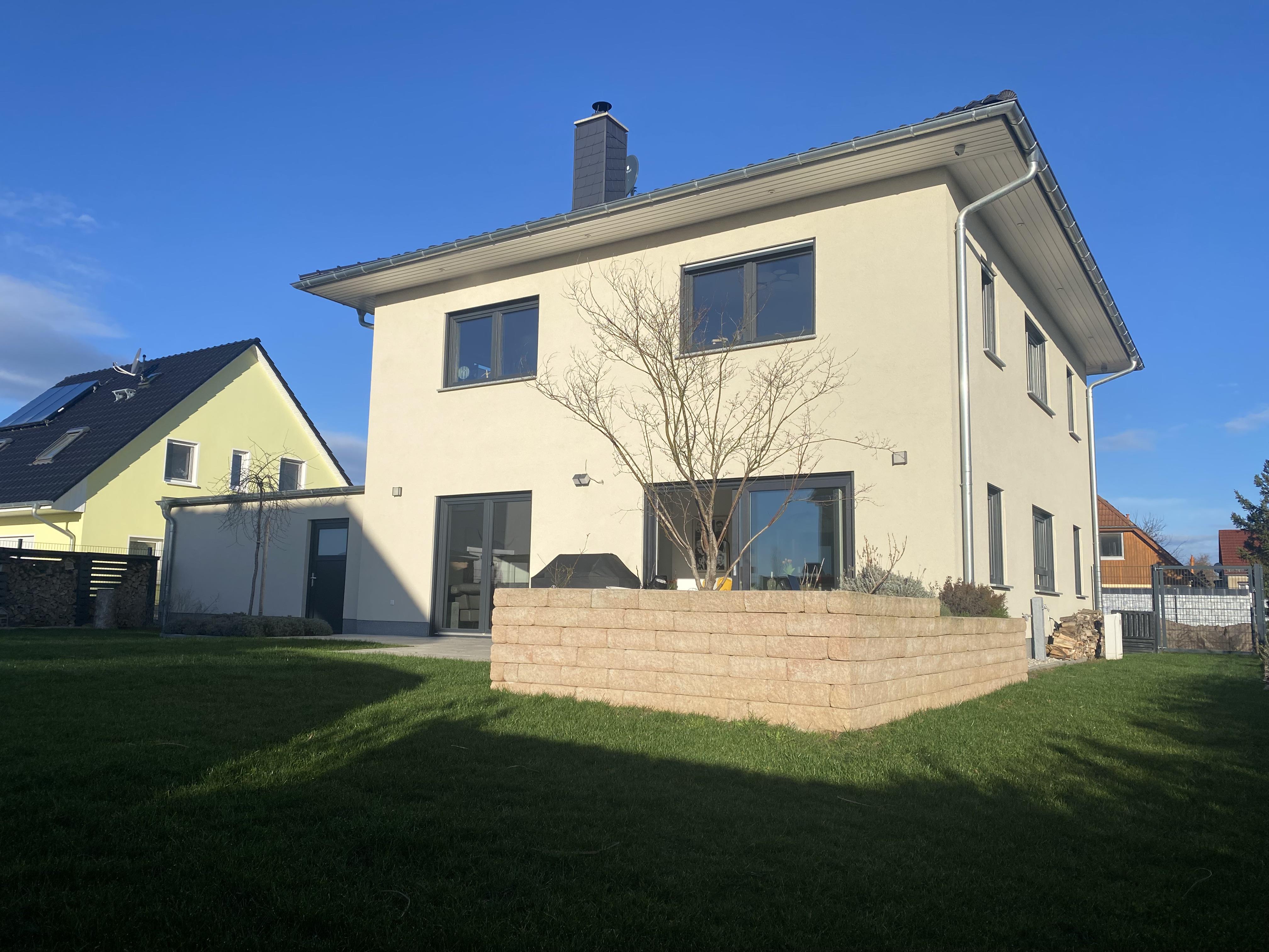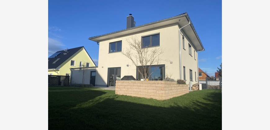 Wir verkaufen unser modernes Einfamilienhaus in Pegau OT Kleinschkorlopp – ein echtes Zuhause zum Ankommen und Wohlfühlen. Das Haus wurde 2020 gebaut und bietet mit ca. 163 m² Wohnfläche, 5 Zimmern und zwei modernen Bädern jede Menge Platz für Familie, Homeoffice und Gäste. Highlight ist der helle Wohn- und Essbereich mit Kamin, offener Küche und Blick in den liebevoll angelegten Garten. Ob entspannte Abende auf der großen Terrasse, Grillen mit Freunden oder Kinoabende im Wohnzimmer – hier lässt es sich richtig gut leben. Beheizt wird das Haus effizient über eine Wärmepumpe mit Fußbodenheizung. Eine große Doppelgarage mit extra Stauraum ist ebenfalls vorhanden. Ruhige Lage mit guter Anbindung, Leipzig ist schnell erreicht. Kaufpreis: 620.000 € – provisionsfrei von privat. Gerne sende ich bei Interesse das ausführliche Exposé zu oder vereinbare einen Besichtigungstermin. Bitte keine Makleranfragen.