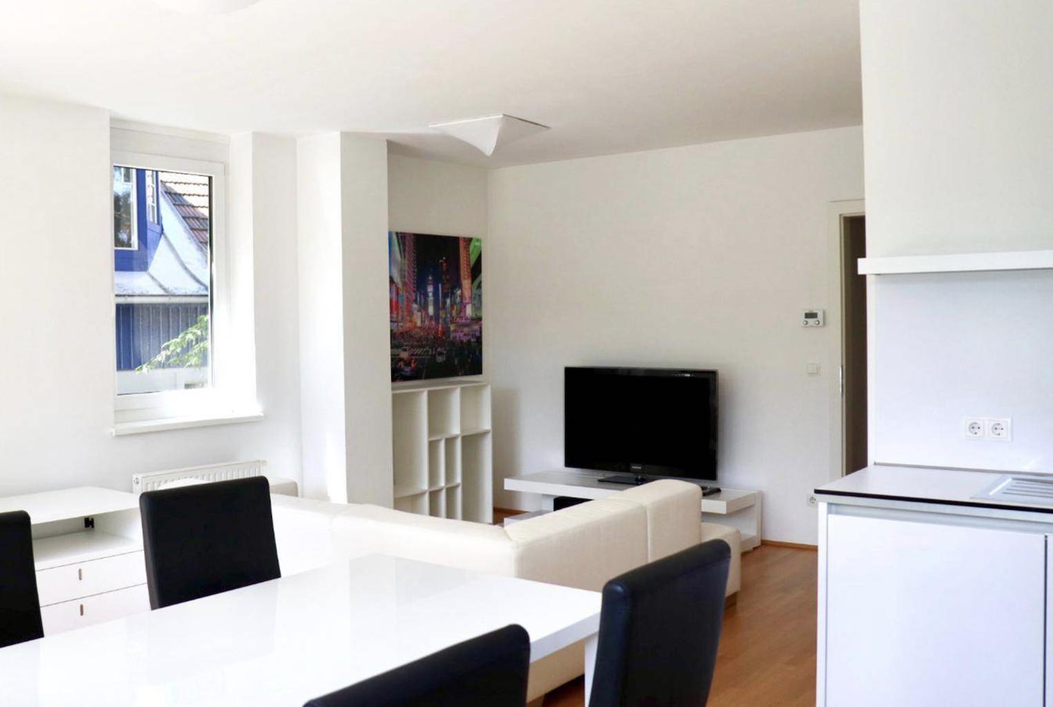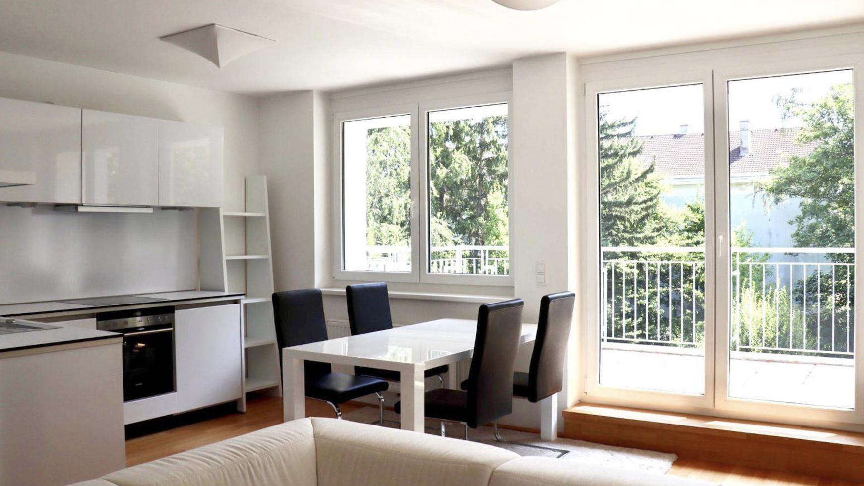 Lichtdurchflutete 3-Zimmerwohnung im 2. OG mit Balkon, der einen malerischen Blick auf ein weitläufiges Gartengrundstück bietet. Die Wohnung präsentiert wird unmöbliert vermietet und besticht durch eine moderne, hochwertige Ausstattung. Die Wohnfläche beläuft sich auf 74,2 m², inklusive einer einer 6,1 m² großen Terrasse sowie einem 3,1 m² großen Kellerabteil. Im Haus befindet sich ein Aufzug. Das Wohnzimmer ist mit einer modernen, weißen Küche ausgestattet, die sämtliche notwendigen Einbaugeräte umfasst. Des Weiteren verfügt die Wohnung über ein zeitgemäßes Badezimmer in Creme-Weiß mit Badewanne und Duschwand, ein separates WC und einen praktischen Abstellraum. Zur weiteren Ausstattung des Hauses gehört ein separates Kellerabteil sowie ein gemeinschaftlicher Fahrradabstellraum. Auf Anfrage steht auch ein persönlicher Garagenplatz zur Verfügung. Die Wohnung befindet sich im Stadtteil Daglfing, dem östlichsten Bereich des Stadtbezirks Bogenhausen. Daglfing hat bis heute seinen eher ländlichen Charakter bewahrt. Der Stadtteil konnte seinen idyllischen Charme mit mehreren historischen Höfen weitestgehend erhalten. Im südlichen Teil dominieren Einfamilien- und Reihenhäuser mit großzügigen Gärten sowie einige alte Gehöfte das Stadtbild. Hier befindet sich auch die Trabrennbahn Daglfing. Die Jankstraße ist eine ruhige Wohnstraße, von der aus die A94 in nur wenigen Minuten erreichbar ist. In etwa 700m Entfernung, fußläufig erreichbar, liegt ein neuer Edeka-Einkaufsmarkt sowie eine Bäckerei, Apotheke und ein Ärztezentrum. Dank der zahlreichen nahgelegenen MVV-Anbindungen sind alle Winkel von München in kurzer Zeit erreichbar. Beispielsweise liegt die S-Bahnstation Daglfing etwa 700m entfernt, und die Linie S8 fährt im 20-Minuten-Takt sowohl in die Innenstadt als auch zum Münchner Flughafen.