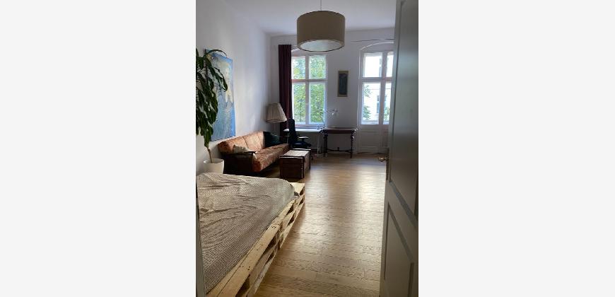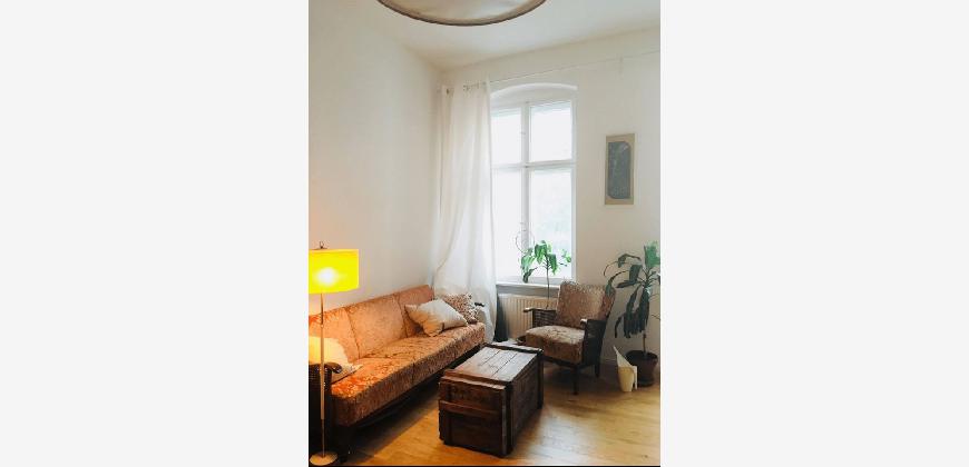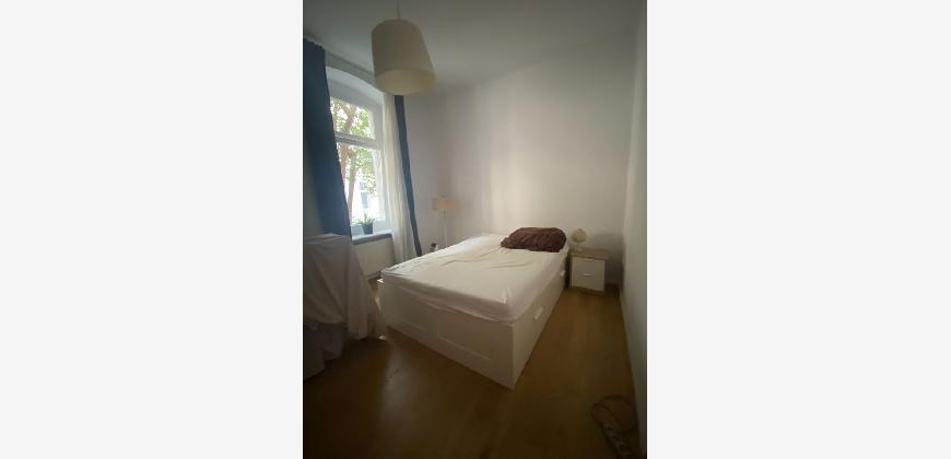 Diese wunderschöne Altbauwohnung im ersten Stock im lebendigen Ebertykiez in Friedrichshain ist ideal für Paare, aber auch für eine Wohngemeinschaft geeignet. Genießen Sie den Charme und Komfort dieses gepflegten Zuhauses in Berlin. Verfügbar ab sofort. Wohnzimmer: Geräumig und einladend, ideal zum Entspannen oder Arbeiten. Schlafzimmer: Zwei Zimmer, jeweils mit einem bequemen Doppelbett. Das Schlafzimmerfenster öffnet sich zum ruhigen Innenhof, was einen erholsamen Schlaf garantiert. Badezimmer: Ausgestattet mit Dusche und Badewanne für Ihren Komfort. Balkon: Ein perfekter Ort, um sich vom Alltagsstress zu erholen. Küche: Vollständig ausgestattet und bereit für alle Ihre kulinarischen Abenteuer. Die Wohnung kostet 1030 € Miete und 205 € Nebenkosten (dies beinhaltet Strom, Gas, Wasser, Internet und Möblierung). Ausgezeichnete Verkehrsanbindung: Nur 5 Minuten zu Fuß zu den Straßenbahnlinien M10, M5, M6, M8 und zur S-Bahn, die eine mühelose Verbindung in der ganzen Stadt gewährleisten. Erstklassige Nachbarschaft: In der Nähe von lebendigen Cafés, Restaurants, Geschäften, Parks und kulturellen Attraktionen.