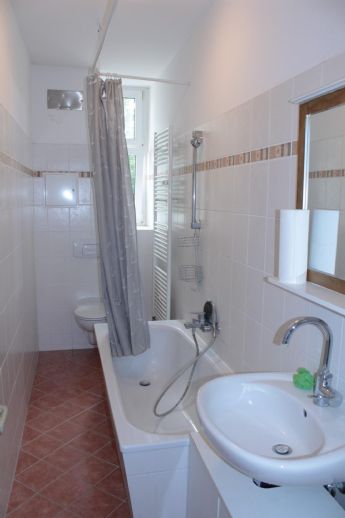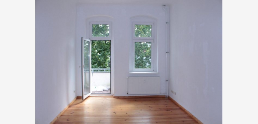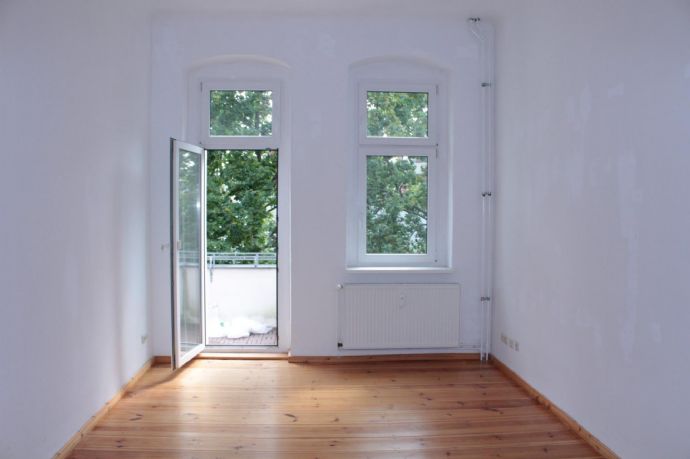 Die hier angebotene Wohnung befindet sich in der 2.Etage des Hinterhauses. Das Balkonzimmer, Küche und Bad weisen in den hinteren Teil des Grundstücks, das Kinderzimmer und das Schlafzimmer haben eine Ausrichtung in den Hof mit Spielplatz. Das Balkonzimmer ist ein Durchgangszimmer zu einem anderen Zimmer, die Wohnung ist daher NICHT für eine WG geeignet! Die genaue Raumaufteilung entnehmen Sie bitte dem inserierten Grundriss. Das moderniesierte Badezimmer verfügt über eine Badewanne, Toilette, Waschbecken und Fenster. Im Rahmen der Modernisierung wurden bereits Isofenster eingebaut. Die Dielen sind klar lackiert, die Wände tapeziert und gestrichen. Die Einbauküche kann gegen einen Abstand vom Vormieter übernommen werden. Dieses Haus ist ein sehr gepflegtes und repräsentatives Mehrfamilienhaus und besteht aus zwei Aufgängen im Vorderhaus und zwei Aufgängen in den Quergebäuden, Der Hof ist begrünt und es gibt einen kleinen Kinderspielplatz.