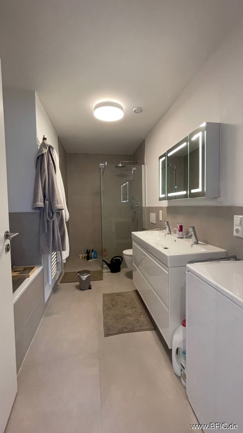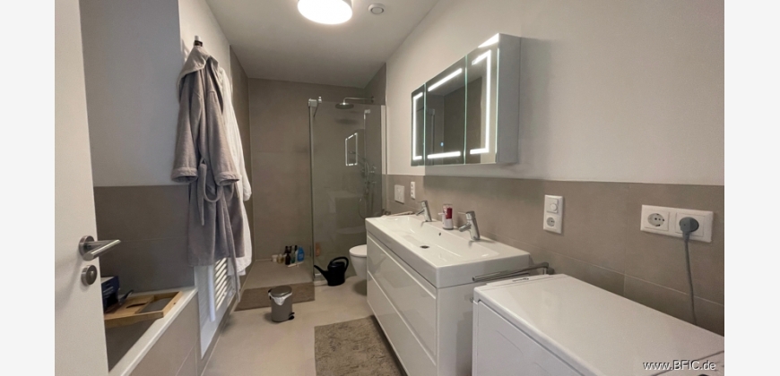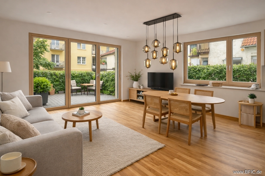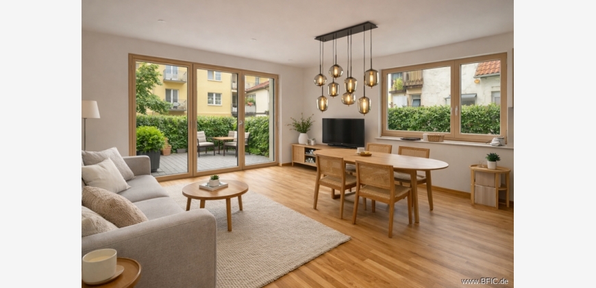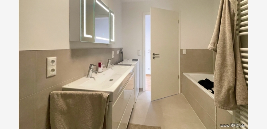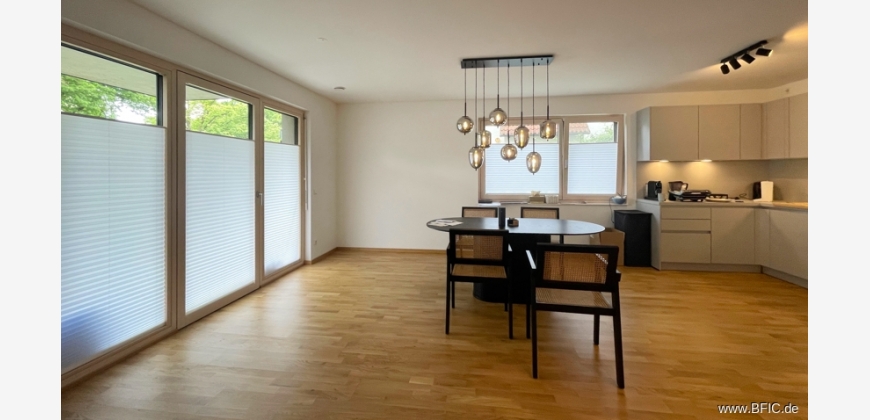 Diese moderne 4-Zimmer-Wohnung liegt im Erdgeschoss eines energieeffizienten Neubaus in der Maisacher Straße 33a in Fürstenfeldbruck und wurde gerade erst fertiggestellt. Sie bietet etwa 108 Quadratmeter Wohnfläche, verteilt auf zwei Ebenen: das Erdgeschoss und ein wohnlich ausgebautes Souterrain mit Tageslicht. Besonders hervorzuheben ist der große, private Garten mit über 124 Quadratmetern Fläche zur alleinigen Nutzung – perfekt für alle, die gerne draußen entspannen, gärtnern oder einfach mehr Platz wollen. Im Erdgeschoss befindet sich ein großzügiger Wohn- und Essbereich mit großen, bodentiefen Fenstern und Zugang zur Terrasse und dem Garten. Die Küche ist offen geplant, aber nicht eingebaut – hier kannst du deine eigene Küche nach Wunsch installieren. Zwei weitere helle Zimmer im EG eignen sich gut als Schlaf-, Kinder- oder Arbeitszimmer. Das Badezimmer ist modern ausgestattet mit bodengleicher Dusche, Badewanne und Doppelwaschtisch. Ein separates Gäste-WC mit Waschmaschinenanschluss ist ebenfalls vorhanden. Zusätzlich steht ein Anschluss im gemeinschaftlichen Waschraum im Keller zur Verfügung. Über eine interne Treppe gelangt man ins Souterrain, das über normale Fenster belichtet wird. Ein grosser Raum, ebenfalls mit Parkett und Fussbodenheizung bietet vielfältige Nutzungsmöglichkeiten, zum Beispiel als ruhiges Homeoffice. Auch eine Nutzung als zusätzliches Schlafzimmer wäre würde sich anbieten. Direkt angeschlossen ist ein separater Stauraum. Von hier aus gelangt man zum Treppenhaus und dem Waschraum. Die Ausstattung ist hochwertig: Fußbodenheizung, Echtholzparkett, elektrische Rollläden, LED-Einbauspots (keine weiteren Leuchten vorhanden), Glasfaseranschluss und Netzwerkdosen in allen Wohnräumen sowie eine Videogegensprechanlage sorgen für modernen Wohnkomfort. Zur Wohnung gehört ein Tiefgaragenstellplatz mit vorbereiteter Wallbox-Anschlussmöglichkeit. Ein eigener Kellerraum ist nicht vorhanden, aber das Souterrain bietet viel Platz, insbesondere im Vorraum zum Keller/Treppenhaus. Fahrräder können sicher im Fahrradraum in der Tiefgarage abgestellt werden. Das Gebäude erfüllt den KfW-40-Plus-Standard und wird über eine Grundwasser-Wärmepumpe beheizt. Eine Photovoltaikanlage mit Batteriespeicher liefert Strom. Eine zentrale Wohnraumlüftung mit Wärmerückgewinnung sorgt für frische Luft ohne Energieverlust. Der Energiebedarf liegt bei nur 12 kWh pro Quadratmeter und Jahr – entsprechend niedrig fallen die laufenden Kosten aus.Hinweis des aktuellen Mieters: In der Wohnung befinden sich einige Einbauten und Gegenstände, die auf Wunsch vom Nachmieter gegen eine geringe Ablöse übernommen werden können. Dazu gehören unter anderem 13 maßgefertigte Plissees (je 35 €), ein Spiegelschrank mit Beleuchtung (100 €), zwei Deckenleuchten (je 50 €) sowie ein Unterwaschbecken, das kostenfrei überlassen würde. Eine detaillierte Liste kann bei Interesse zur Verfügung gestellt werden – Fotos sind ebenfalls auf Wunsch erhältlich. Durch die Übernahme sparen Sie sich einen guten Teil der Einrichtungskosten und einige Arbeit. Der Mieter könnte die Wohnung bei Bedarf auch vor dem ursprünglich vereinbarten Auszugstermin übergeben – ein früherer Einzug ist daher flexibel möglich. Küchenplanung: Die Wohnung wird ohne Einbauküche übergeben. Gerne geben wir auf Wunsch Tipps für gute und preiswerte Küchenlösungen, die sowohl optisch als auch funktional gut zur Wohnung passen. Wichtiges im Überblick: • Wohnfläche: ca. 108,30 m² (EG + Souterrain mit Tageslicht) • Zimmer: 4 (davon 3 im EG, 1 großer Raum im Souterrain) • Etagen: Erdgeschoss + Souterrain (intern durch Treppe verbunden) • Garten: ca. 124 m² zur alleinigen Nutzung • Terrasse: mit Strom- und Wasseranschluss • Badezimmer: mit Dusche, Badewanne, Doppelwaschbecken + Gäste-WC • Küche: nicht vorhanden (frei planbar) • Möblierung: unmöbliert, keine Leuchten außer LED-Einbauspots • Bodenbelag: Echtholzparkett, Fußbodenheizung • Waschmaschinenanschluss: im Bad + alternativ im Waschraum im Keller • Keller: kein separates Kellerabteil – Stauraum im Souterrain • Tiefgarage: 1 Stellplatz mit Wallbox-Vorbereitung (Nr. 16) • Fahrradraum: in der Tiefgarage vorhanden • Energieeffizienz: KfW 40 Plus, 12 kWh/(m²·a), PV-Anlage, Wärmepumpe, Lüftungsanlage mit WärmerückgewinnungDie Wohnung befindet sich in ruhiger, gewachsener Wohnlage im westlichen Teil von Fürstenfeldbruck – einer Stadt, die für ihre hohe Lebensqualität und die Nähe zu Natur und München bekannt ist. Das Haus liegt in der Maisacher Straße 33a, in einem modernen Wohnensemble mit viel Grün ringsum. Hier wohnt man angenehm zurückgezogen, ohne auf gute Erreichbarkeit verzichten zu müssen. Der tägliche Bedarf ist fußläufig oder mit dem Fahrrad schnell gedeckt: In der näheren Umgebung befinden sich mehrere Supermärkte, Bäckereien, Apotheken und Cafés. Auch Ärzte, Banken und kleinere Geschäfte sind gut erreichbar. Familien profitieren von der sehr guten Infrastruktur mit Kitas, Grundschulen und weiterführenden Schulen in der Nähe. Für Pendler ist die Anbindung nach München ideal: Die S-Bahn-Station Fürstenfeldbruck (S4) ist in wenigen Minuten mit dem Rad oder Bus erreichbar – von dort aus fährt die Bahn in etwa 25 Minuten direkt zum Münchner Hauptbahnhof. Mit dem Auto erreicht man über die B471 oder A8/A96 schnell die Landeshauptstadt, den Münchner Westen oder auch Augsburg. Wer Freizeit und Erholung sucht, findet direkt vor der Haustür zahlreiche Möglichkeiten: Die Amper mit ihren Uferwegen ist perfekt zum Spazierengehen, Joggen oder Radfahren. Auch das beliebte Naherholungsgebiet rund um das Pucher Meer, das Emmeringer Hölzl oder der Ammersee sind schnell erreichbar. Kulturell bietet Fürstenfeldbruck mit dem Veranstaltungsforum im Klosterareal und einer lebendigen Innenstadt mit Gastronomie und Wochenmärkten ebenfalls viel Abwechslung.