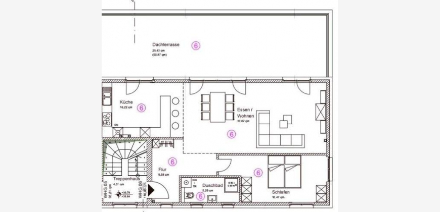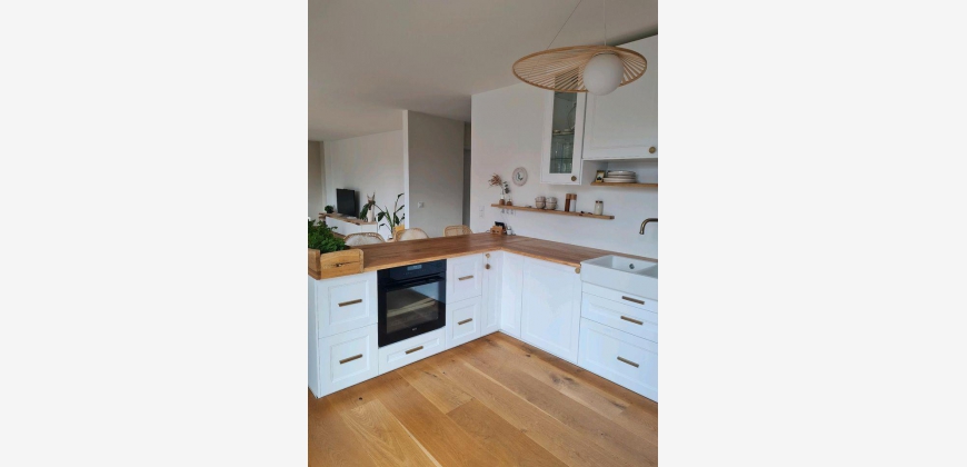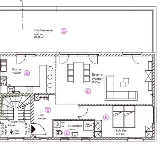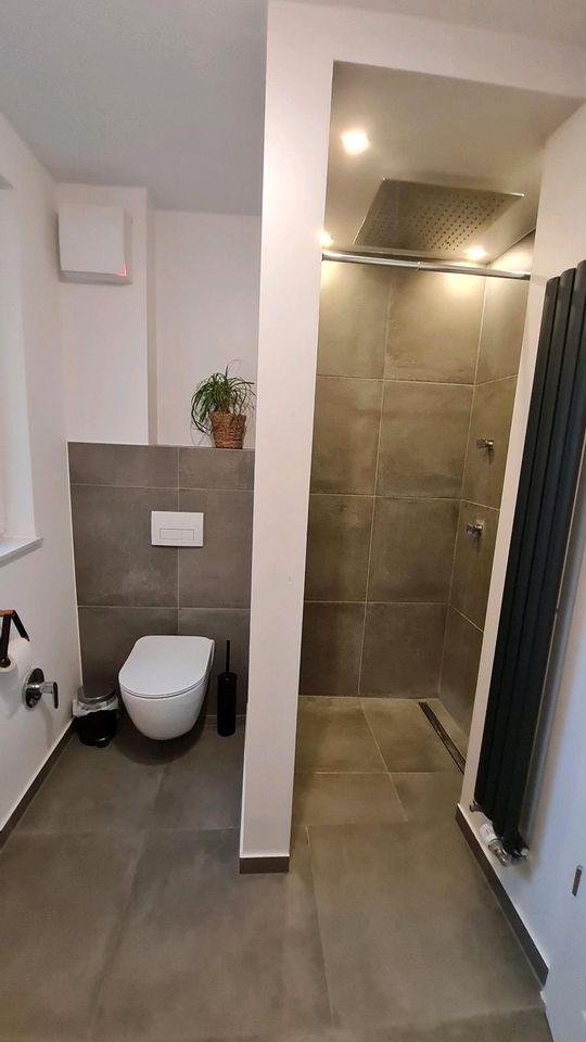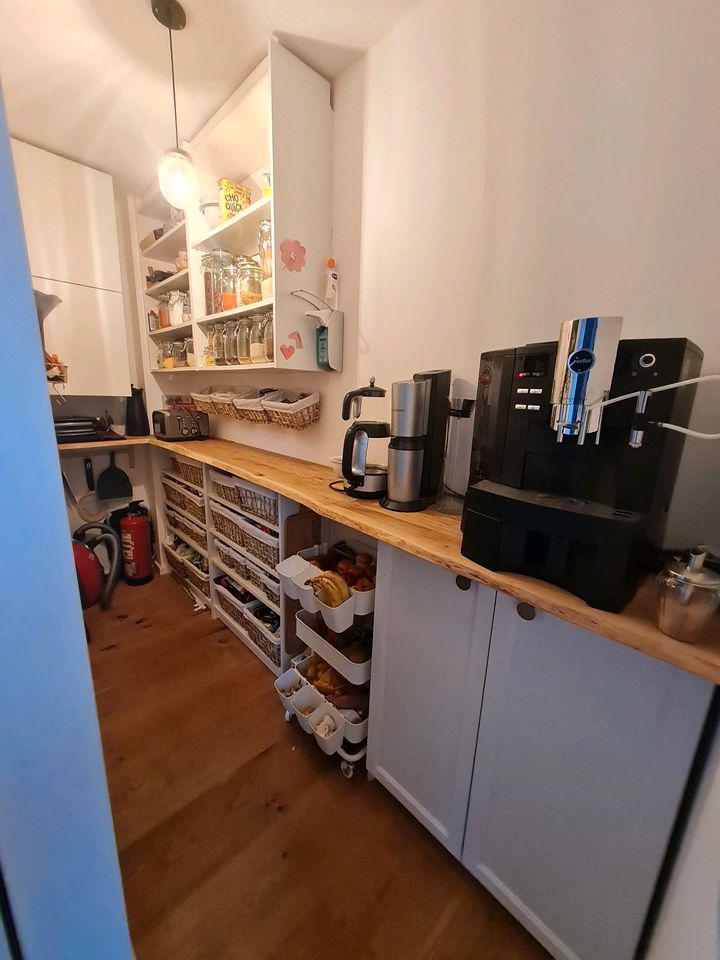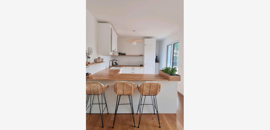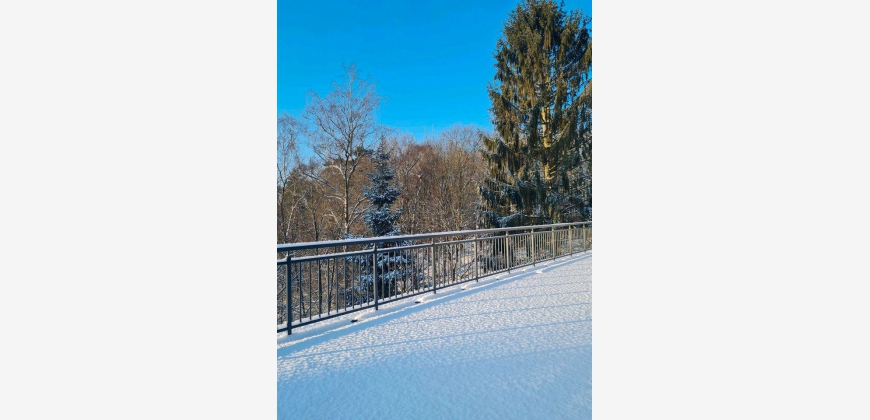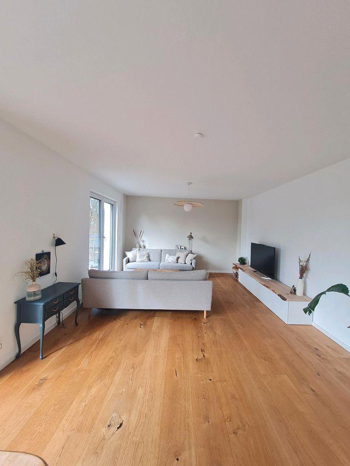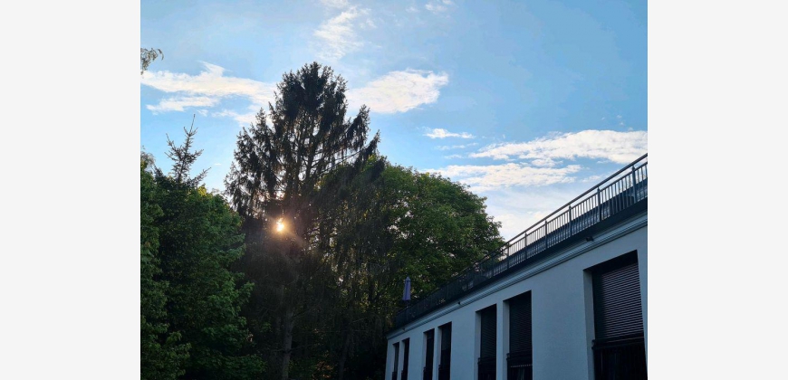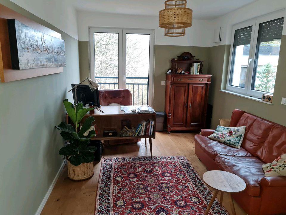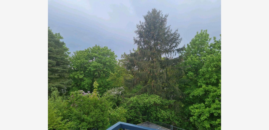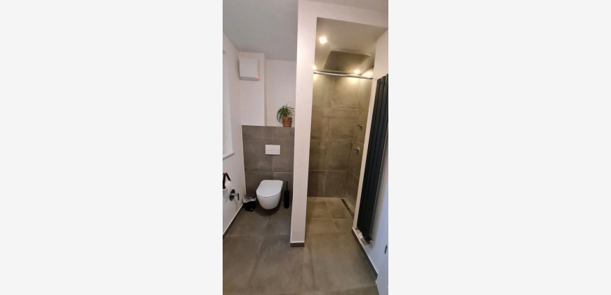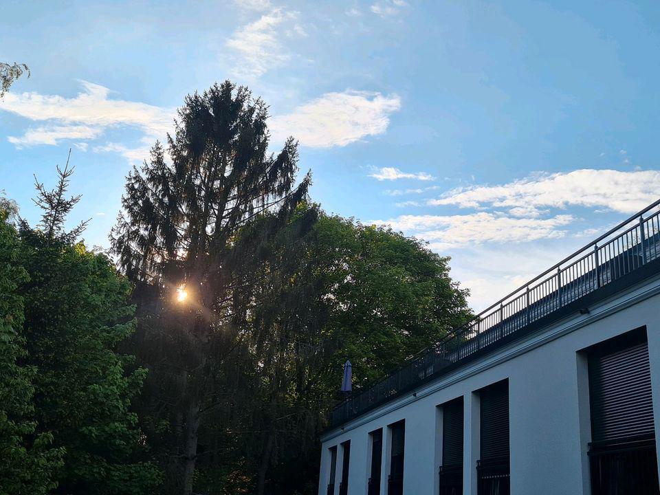 Diese moderne und sehr gepflegte Penthouse-Wohnung bietet zu jeder Jahreszeit einen herrlichen Ausblick. Von der Dachterrasse genießt man sehr privat die Natur. In unmittelbarer Nähe befinden sich Rewe, eine Bushaltestelle, Apotheke, Kiosk, Bäcker … Die Wohnung besteht aus einem Wohn-/Esszimmer mit offener Küche sowie einem weiteren Zimmer. Vom Wohnzimmer und der Küche aus haben Sie Zugang zur großen Dachterrasse mit ca. 50 m² Grundfläche. Die Terrasse wird zur Hälfte der Grundwohnfläche dazugerechnet. Bei Bedarf ist es möglich, sich durch eine Trennwand ein weiteres kleines Zimmer einzurichten. Ausstattungsmerkmale der Wohnung: Offene Küche mit bodentiefen Fenstern für zusätzliches Licht Hinter der Küche befindet sich eine Speisekammer Gemütlicher Wohnbereich mit vielen Fensterelementen Große Regendusche Einzigartige Dachterrasse mit Ausblick ins Grüne Bodenbeläge: Fliesen und Parkett Eigener Kellerraum Stellplatz (anmietbar) Zur Wohnung gehört außerdem ein Gemeinschaftsgarten, der jederzeit nutzbar ist. Zur Miete kommen je nach Eigenverbrauch die Heizkosten hinzu.