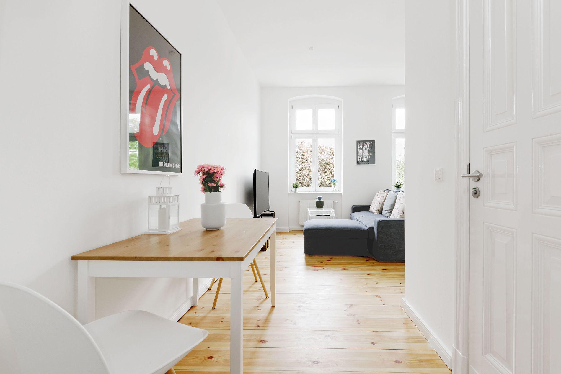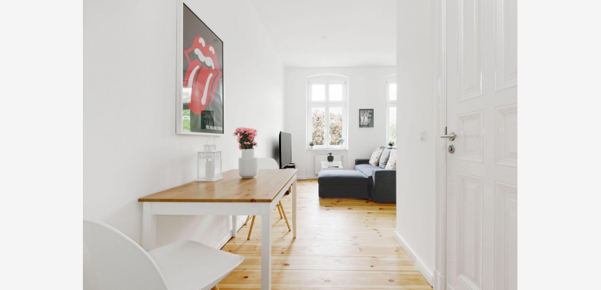 Stylisches 52 m² Apartment — Toplage Berlin-Mitte (gegenüber Weinbergpark) Dieses wunderschöne, 52 m² große Apartment verbindet urbanes Flair mit höchstem Wohnkomfort. Das großzügige Schlafzimmer mit komfortablem Doppelbett liegt ruhig zum begrünten Innenhof. Das moderne Badezimmer ist mit einer großen Dusche und einer Waschmaschine ausgestattet — so bleibt Ihnen der Gang zur Reinigung erspart. Der offene Wohnbereich besticht durch seine Weitläufigkeit und die freistehende Designerküche, die Hobbyköche genauso begeistert wie gemütliche Dinner zu zweit. Für Unterhaltung stehen ein Flatscreen-TV sowie kostenfreier WLAN-Zugang zur Verfügung. Highlights auf einen Blick 52 m², durchdachter Grundriss Ruhiges Schlafzimmer zum Innenhof mit Doppelbett Großzügige Dusche; Bad mit Waschmaschine Offene Designer-Küche, idealer Essbereich Flatscreen-TV & kostenloses WLAN Perfekte Lage — mitten in Berlin-Mitte Das Apartment liegt in einer absolut bevorzugten Lage: nur ca. 150 m vom Rosenthaler Platz entfernt und gegenüber des Weinbergparks. In wenigen Minuten erreichen Sie zu Fuß U-Bahn (Rosenthaler Platz), Tram (Brunnenstraße / Invalidenstraße) und zahlreiche Cafés, Restaurants und Bars. Sehenswürdigkeiten wie die Hackeschen Höfe, die Museumsinsel, das Brandenburger Tor und die Einkaufsmeilen sind schnell erreichbar — perfekt für Kultur- und Shoppingfreunde. Entfernungen Supermarkt (REWE): ~1 Min. Fußweg Tram: ~1 Min. Fußweg (Brunnenstraße / Invalidenstraße) U-Bahn: ~5 Min. Fußweg (Rosenthaler Platz) Restaurants & Cafés: direkt vor der Haustür Dieses Apartment eignet sich ideal für Stadtliebhaber, Geschäftsreisende oder Paare, die zentral, stilvoll und komfortabel wohnen möchten.