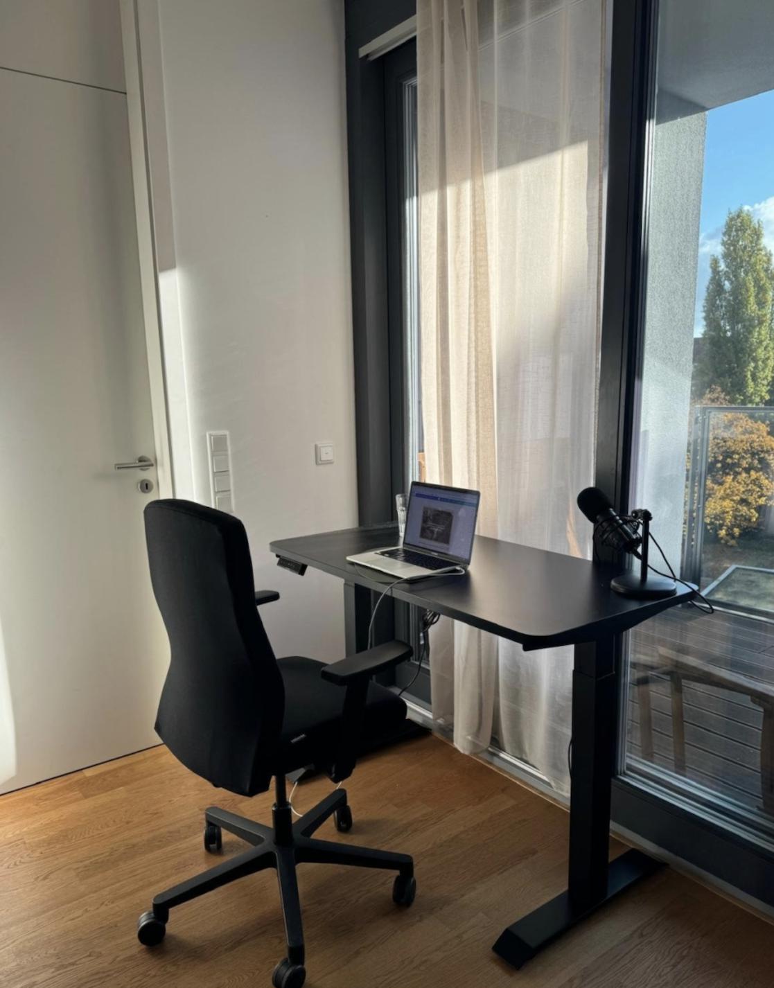 Ich biete unsere moderne Neubauwohnung in Hamburg HafenCity zur unbefristeten Miete an. Diese Wohnung befindet sich im 5. Obergeschoss und hat eine Größe von 56 m². Sie punktet mit einem großzügigen Balkon und großen Fenstern, die viel Licht hereinlassen und einen schönen Blick ins Grüne bieten. Die Räume sind neu und stilvoll eingerichtet und umfassen zwei Zimmer: ein gemütliches Schlafzimmer, einen offenen Wohn- und Essbereich mit einer kleinen Homeoffice-Ecke und einem höhenverstellbaren Schreibtisch, sowie ein getrenntes Bad mit Dusche und Badewanne. Die Wohnung verfügt zudem über Fußbodenheizung für ein behagliches Wohngefühl. Die offene Küche ist voll ausgestattet, und alles, was du für einen angenehmen Aufenthalt benötigst, ist vorhanden – inklusive Internet. Mir ist wichtig, dass sorgfältig mit der Wohnung umgegangen wird. English: I’m offering our modern new-build apartment for indefinite rent in Hamburg HafenCity. This apartment, situated on the 5th floor, has 56 m² of living space with a spacious balcony and large windows that allow plenty of natural light and offer a lovely green view. It’s fully furnished with two main areas: a cozy bedroom and an open living-dining area with a dedicated workspace featuring an adjustable desk, plus a separate bathroom with both a shower and bathtub. The apartment is also equipped with underfloor heating for extra comfort. The open-plan kitchen is fully fitted with all essentials, including internet, so you’ll have everything you need for a convenient stay. I value careful use of the apartment.