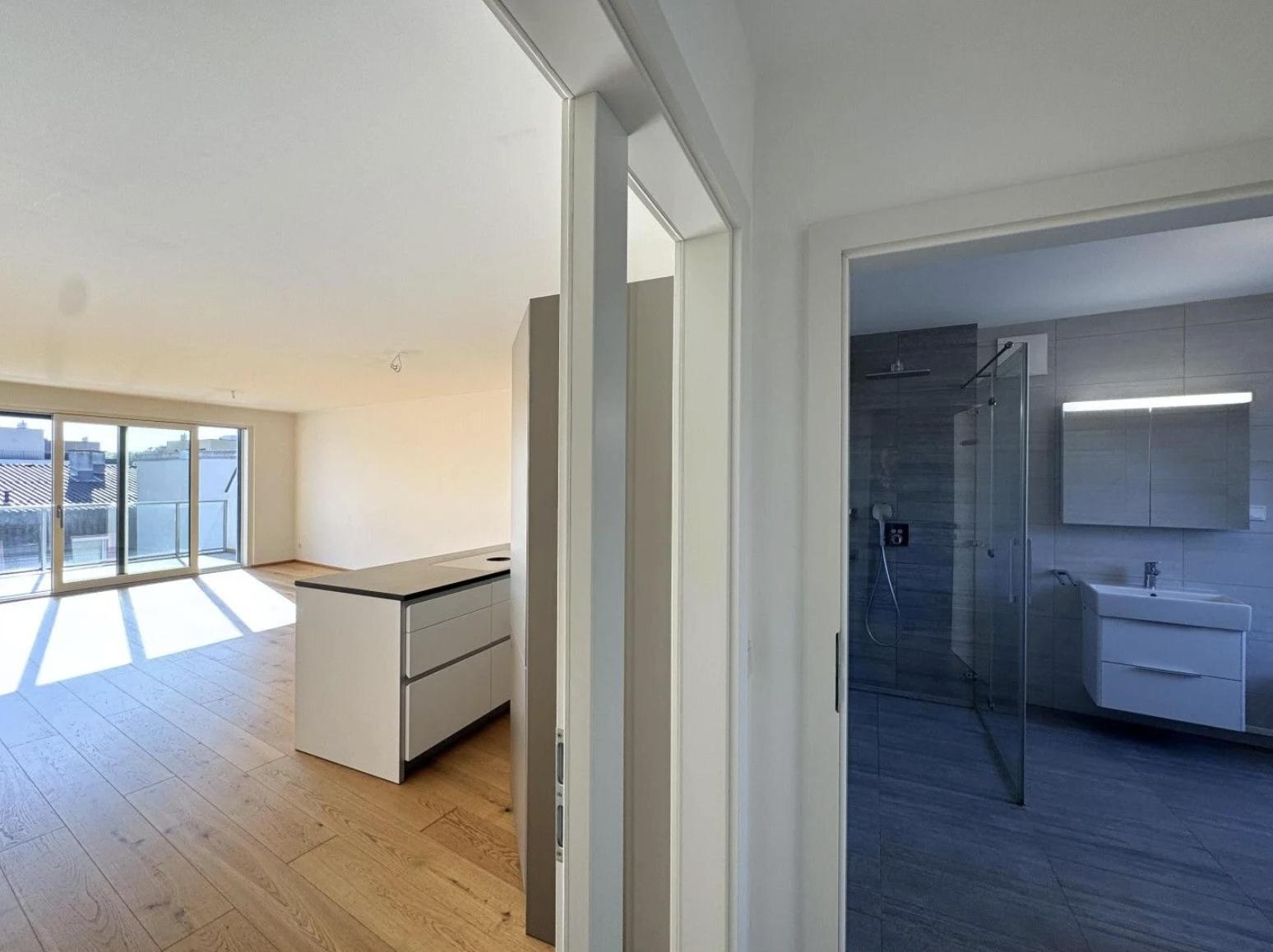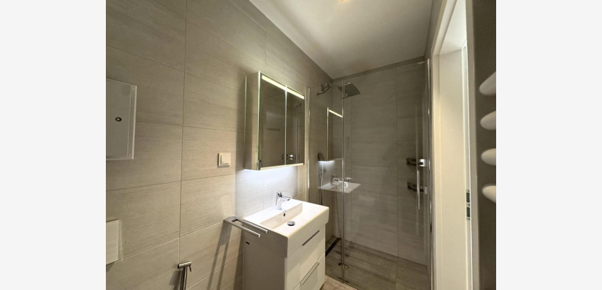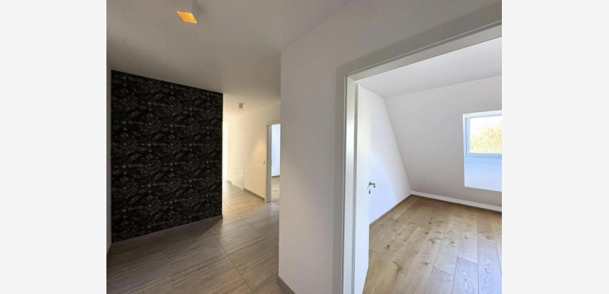 Wohnung in Bornheim – Nähe Comeniusstraße Diese Wohnung befindet sich in einer ruhigen und gleichzeitig zentralen Lage in der Comeniusstraße, Bornheim. Sie liegt im ersten Dachgeschoss eines gepflegten Hauses und bietet eine lichtdurchflutete, großzügige Raumaufteilung. Der Eingangsbereich bietet ausreichend Platz für eine Garderobe. Von dort aus gelangt man direkt zu den beiden Schlafzimmern, zwei Bädern sowie einem praktischen Wirtschaftsraum. Das geräumige Wohnzimmer mit offener Küche und Zugang zur Loggia rundet das Gesamtbild ab. Die Ausstattung der Wohnung ist hochwertig und auf modernsten Komfort sowie Energieeffizienz ausgelegt. Sie umfasst unter anderem elektrische Raffstores, eine Sicherheitstür, individuell regulierbare Fußbodenheizung, edlen Eichenparkett, dreifachverglaste Fenster und einen separaten Kellerraum. Ein Stellplatz in der hauseigenen Tiefgarage ist bereits im Mietpreis enthalten. Die monatliche Gesamtmiete beträgt 1.448,22 EUR (inkl. Küche von Bulthaup, Miele-Geräten und Tiefgaragenstellplatz). Die Wohnung ist ab sofort verfügbar.