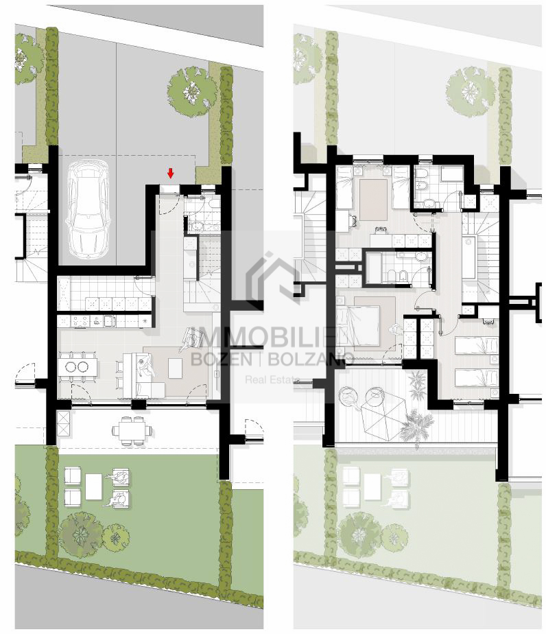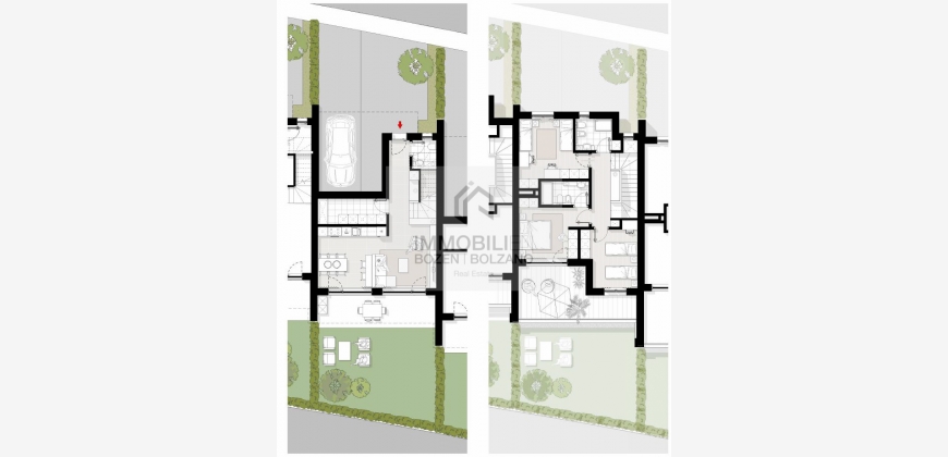In Salurn entsteht ein innovatives und qualitativ hochwertiges Wohnprojekt mit Einfamilien-Reihenhäusern, 2-Zimmerwohnungen mit Garten und 3-Zimmerwohnungen mit Terrasse, eingebettet in eine ruhige und grüne Umgebung, umgeben von malerischen Weinreben. Das Dorfzentrum ist nur wenige Schritte entfernt, und dennoch bleibt der Verkehrslärm fern. Diese Villen & Wohnungen, zertifiziert als Klimahaus A, werden ab Frühjahr 2026 bezugsfertig sein. Die Innenräume werden individuell nach den Wünschen der Kunden gestaltet. Im Erdgeschoss befindet sich das große Wohn- und Esszimmer mit Kochecke, Waschraum, sowie ein Tages-WC. Vom Wohnzimmer gelangt man direkt auf die Terrasse und den Garten, die ideal für einen gemütlichen Brunch oder einen Aperitif sind. Im 1. Stock befinden sich 3 Schlafzimmer, 2 Bäder und eine große Terrasse. Zwei Privatparkplätze vor dem Haus, runden das Angebot ab. Die angegebenen Informationen sind indikativ und können Abänderungen unterliegen.
