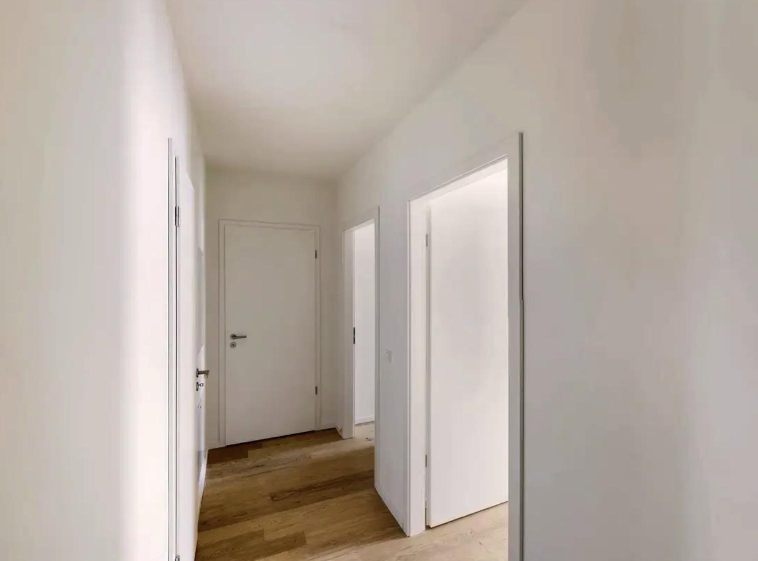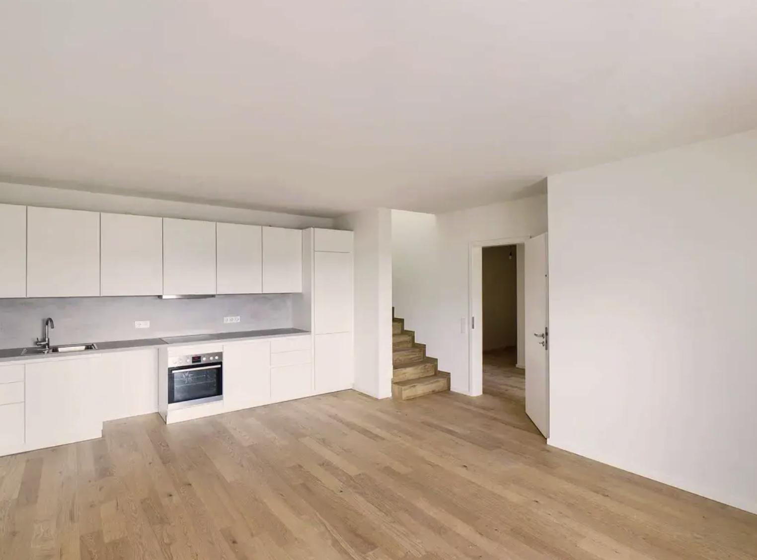 Großzügige 3 Zimmer Maisonette-Neubauwohnung mit Terrasse in Neuhausen. Die Wohnung erstreckt sich über zwei Ebenen (4. und 5. Stock) und befindet sich in einem repräsentativen Nebau - mit Personenaufzug - in zentraler Lage fußläufig zum Rotkreuzplatz. Die Wohnung verfügt über zwei separate Schlafzimmer und zwei Bäder. Im 4. Stock gelangt man über einen Eingangsbereich in den Wohnbereich mit Küche und einem geräumigen Balkon. Sowie einem Badezimmer Dusche mit WC. Im Oberen Stockwerk befinden sich 2 Schlafzimmer mit Terrasse und einem weiteren Badezimmer mit Wanne und WC. Spacious 3-room duplex apartment with a terrace in Neuhausen. The apartment spans two levels (4th and 5th floor) and is located in a prestigious new building - with an elevator - in a central location within walking distance to Rotkreuzplatz. The apartment has two separate bedrooms and two bathrooms. On the 4th floor, an entrance area leads to the living area with a kitchen and a spacious balcony, as well as a bathroom with a shower and toilet. On the upper floor, there are 2 bedrooms with a terrace and another bathroom with a bathtub and toilet.