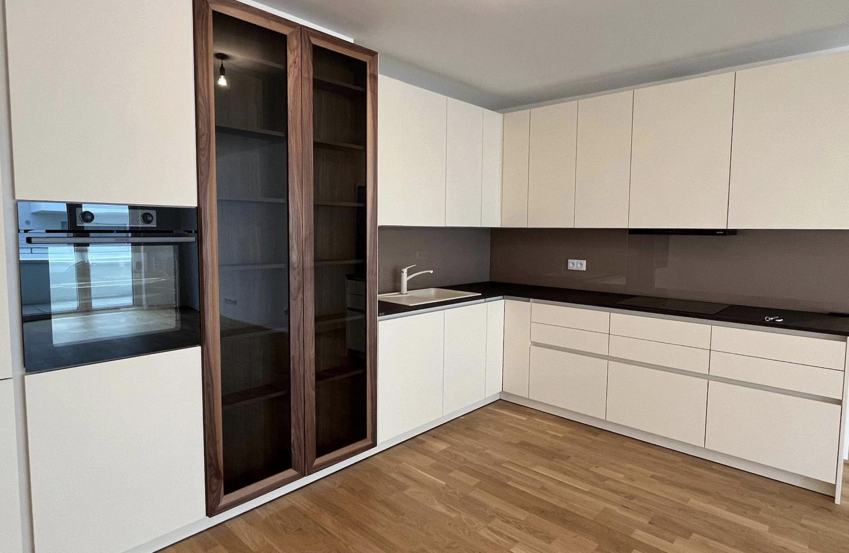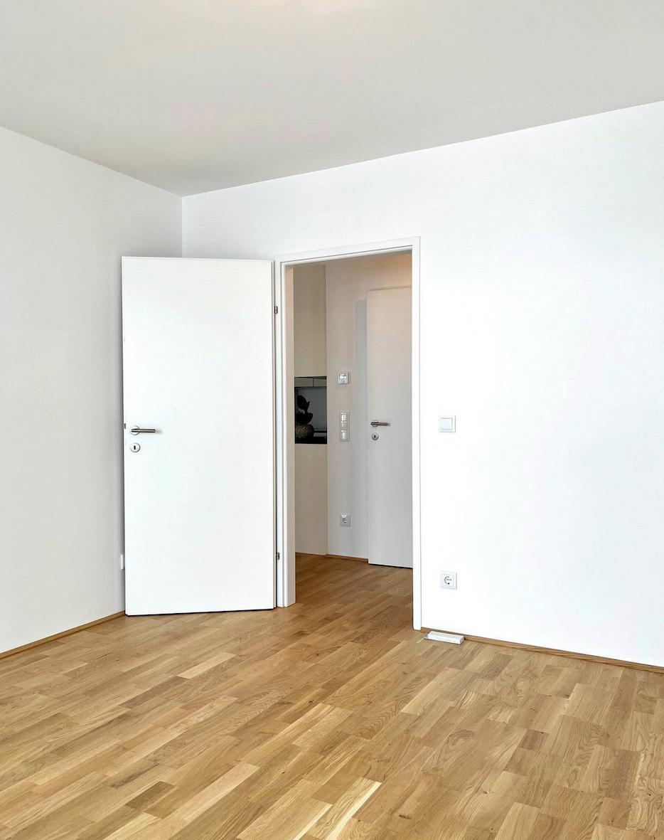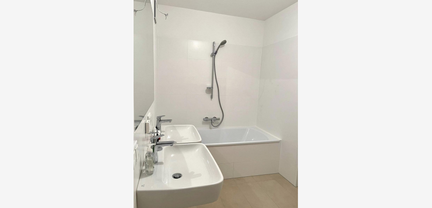 Diese stilvoll modern gestaltete Wohnung befindet sich im zweiten Obergeschoss einer privaten Wohnanlage. Sie ist barrierefrei konzipiert, sodass alle Räume ebenerdig sind. Zudem ist die Wohnung mit Fußbodenheizung, hochwertigem Echtholzparkett, ferngesteuerten Sonnenschutz-Jalousien, einer Einbauküche mit maßgefertigtem Weinglasregal sowie einer Badewanne im Badezimmer ausgestattet. Die ruhige Lage im Innenhof garantiert eine angenehme Wohnatmosphäre. Trotz der Helligkeit in der Wohnung bleibt diese kühl, da sie nicht der direkten Sonneneinstrahlung ausgesetzt ist. Der einladende Vorraum bietet viel Raum für kreative Einrichtungsideen und führt in das großzügige Wohn-Esszimmer (ca. 30,76 qm). Weiterhin verfügt die Wohnung über ein Schlafzimmer (ca. 17,87 qm), ein Kinderzimmer/Büro (ca. 12,08 qm), einen Abstellraum (ca. 3 qm), ein geräumiges Badezimmer mit Badewanne (ca. 5,67 qm), ein WC mit Waschbecken (ca. 1,90 qm) und einen Keller (ca. 2,61 qm). Eine Loggia-Balkonkombination (ca. 12,3 qm) bietet einen schönen Blick in den Innenhof.