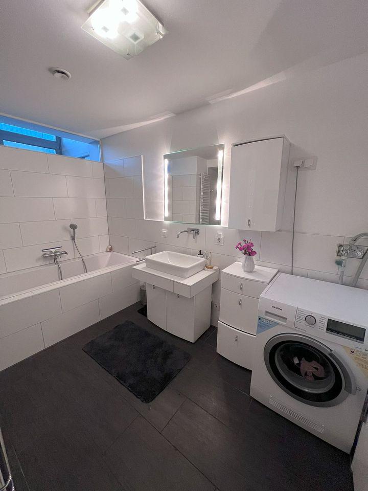 Nachmieter für eine wunderschöne, moderne, energieeffiziente, sehr zentral gelegene sowie voll möblierte Wohnung in Frankfurt am Main ab sofort gesucht! Die 72 m² große Wohnung mit hohen Decken (über 4 Meter) ist vollständig eingerichtet und bietet alles, was man zum Wohlfühlen braucht- Zusätzliche Möbel oder Geräte sind nicht nötig. Zur Ausstattung gehören eine komplett eingerichtete Küche (inklusive Geschirr, Spülmaschine, Induktionsherd und Kühlschrank), Klimaanlage, Fußbodenheizung, Wäschetrockner, Badewanne, Videofreisprechanlage, Fernseher, Staubsauger, Waschmaschine, ein im Innenhof gelegener Fahrradstellplatz sowie ein Kellerraum. Zusätzlich steht ein Tiefgaragenstellplatz für 120 € monatlich zur Anmietung bereit. Die Wohnung verfügt über einen Glasfaser-Internetanschluss, der bei einem Anbieter Ihrer Wahl bestellt werden kann. Die Stromversorgung ist nicht im Hausgeld enthalten, sodass Sie Ihren bevorzugten Stromanbieter frei wählen können. Wohnungsbesichtigungen können jederzeit gerne vereinbart werden. Bitte haben Sie jedoch Verständnis, dass Besichtigungen nur für potenzielle Nachmieter möglich sind.