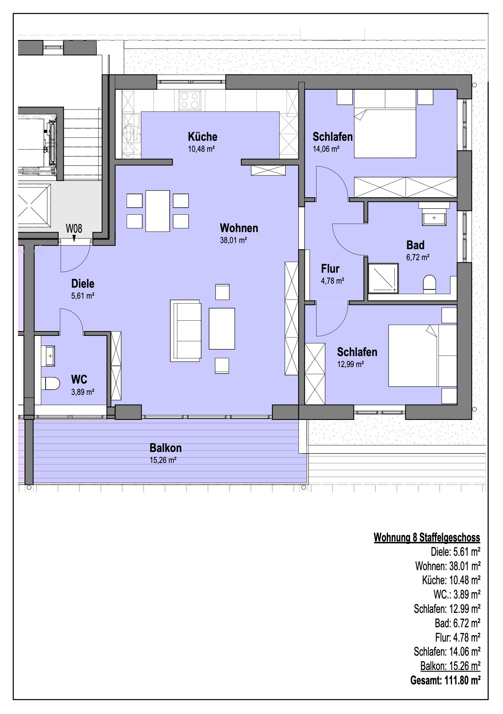 Willkommen in Ihrem neuen Traumdomizil! Dieses exklusive 107,4 qm² Penthouse im hochwertigen Neubau vereint modernen Komfort, stilvolles Design und nachhaltige Technik auf höchstem Niveau. Mit drei großzügigen Zimmern, einer offenen Wohnküche und einem beeindruckenden Balkon bietet diese Wohnung ein einzigartiges Wohnerlebnis in einer begehrten Lage. Das barrierefreie Design, der Aufzug und die moderne Ausstattung machen dieses Penthouse zu einem besonderen Ort. Raumaufteilung: • Großzügiges Wohnzimmer mit offener Wohnküche – perfekt für gesellige Abende und kulinarische Highlights • Zwei helle Schlafzimmer, ideal für Familie, Gäste oder Home-Office • Modernes Gäste-WC für zusätzlichen Komfort • Elegantes Badezimmer mit Tageslicht • Separater Abstellraum für Stauraum und Organisation • Flur mit barrierefreiem Zugang zu allen Räumen Ausstattung & Highlights: • Barrierefreier Zugang durch einen Aufzug, der direkt in die Penthouse-Etage führt • Großzügiger Balkon mit Platz für Lounge-Möbel und Pflanzen – ideal für entspannte Stunden im Freien • Fußbodenheizung in allen Räumen • Offene, moderne Küche • Hochwertige Fenster und exzellente Isolierung für optimale Energieeffizienz • Beheizung durch eine innovative Bio-Gas-Heizung – umweltfreundlich und zukunftsweisend • Eigener Stellplatz am Haus (monatliche Miete zusätzlich 60,00€) • Hochwertige Materialien und moderne Ausstattung für ein luxuriöses Wohngefühl Besondere Merkmale: • Penthouse-Lage mit beeindruckendem Ausblick und viel Tageslicht • Nachhaltiges Wohnen durch moderne Bio-Gas-Heizung • Barrierefreiheit für höchsten Komfort und Flexibilität • Hochwertige Verarbeitung und stilvolle Details für ein exklusives Ambiente • Ruhige, dennoch zentrale Lage mit hervorragender Infrastruktur Lage: Die Wohnung befindet sich in einer äußerst attraktiven Lage mit hervorragender Infrastruktur. In unmittelbarer Nähe finden Sie Einkaufsmöglichkeiten, einen Kindergarten sowie Grund- und weiterführende Schulen. Die Innenstadt ist fußläufig sehr gut erreichbar und lädt zum gemütlichen Kaffee trinken ein. Außerdem befinden sich in der Nähe Ärzte, sodass die medizinische Versorgung bequem gewährleistet ist. Der nahegelegene Park bietet schöne Gelegenheiten zum Spazierengehen und Entspannen. Die Autobahn ist ebenfalls schnell erreichbar, was die Anbindung an umliegende Städte erleichtert. Sonstiges: Der Einzugstermin ist ab dem 01.02.2026 möglich. Die Wohnung entspricht dem modernsten und effizientesten Standard und ist somit zukunftssicher. Der Energieausweis wird mit Fertigstellung des Hauses angefertigt und liegt bei Vertragsunterzeichnung vor. Mietkonditionen: Auf Wunsch des Eigentümers wird ein Staffelmietvertrag geschlossen, bei dem die Miete alle drei Jahre um 6 % erhöht wird. Die Mindestmietzeit beträgt 2 Jahre. Zudem fällt eine Kaution in Höhe von 2 Nettokaltmieten an. Wenn Sie Interesse an der Wohnung haben, bitte ich Sie, sich mit einer kurzen Bewerbung zu Ihrer Person bei mir zu melden. Bitte beachten Sie, dass Anfragen ohne Angaben zu Beruf/Tätigkeit und der Anzahl der einzuziehenden Personen nicht beantwortet werden können.