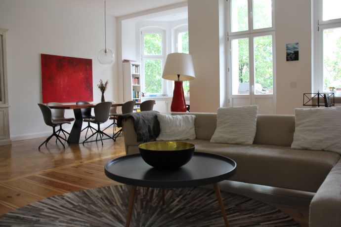 Die erst vor zwei Jahren hochwertig sanierte Wohnung paart Altbau-Charme und klares, modernes Design. Sie befindet sich im zweiten Stock eines wunderschönen Gründerzeitbaus, das bestens in Schuss ist und weder an einem ständig kaputten Aufzug oder noch an einem feuchten Keller leidet. Die Wohnung ist perfekt geeignet für Singles, Paare oder eine Familie mit ein bis zwei Kindern. Das Zentrum Ihres neuen Zuhauses bildet das großzügige Wohn-Ess-Zimmer, das viel Platz für einen Esstisch, aber zusätzlich auch für ein gemütliches Wohnzimmer bietet. Der großzügige Balkon, der Platz für einen Grill und einen Tisch bietet, der Blick in den begrünten Hof vom Haupt-Schlafzimmer und hohe Decken sind nur ein paar der weiteren Vorzüge der Wohnung. Die ruhigen Nachbarn, die viel Verständnis für Kinder haben, machen die Wohnung perfekt für Familien. Besonderheiten- repräsentativer, großzügiger Wohnbereich- aufgearbeitete Dielen- Wohnzimmer mit Zugang zum Balkon- Neue Fenster mit hervorragender Isolierung - die Wohnung bleibt auch in heißen Sommern noch angenehmen temperiert- 2 frisch sanierte, hochmoderne Bäder - eines mit Dusche, eines mit Badewanne - Bäder und Flur mit modernen Spots- hochwertiges Sicherheitsschloss- Einbauküche - der Raum ist groß genug, um als Wohnküche genutzt werden zu können- großzügiger Balkon mit Stromanschluss Ruhig gelegen mit Bäumen und einem kleinen Platz inklusive Springbrunnen direkt vor der Haustür, bietet die Wohnung im Jessel-Kiez das Beste aus beiden Welten: Sie leben umgeben von fast kleinstädtischer Idylle, perfekt auch für Kinder, die gern draußen spielen, und gleichzeitig sind es zum Kurfürstendamm keine fünf Minuten mit dem Auto. Das macht den Jessel-Kiez zu einer der beliebtesten Wohnlagen in Berlin-Wilmersdorf. Die nächste U-Bahnstation (Fehrbelliner Platz) liegt etwa drei Geh-Minuten entfernt. Supermärkte, Bio-Laden, Apotheke, kleine Läden für alles, was schön ist - aber auch Restaurants, Cafes und gleich mehrere Kitas - sind zu Fuß erreichbar. Und auch zur A100 sind es nur 3 Fahrtminuten. Ein absolutes Plus: Die Parkplatz-Situation in der Straße ist mit Anwohner-Park-Plakette relativ entspannt.