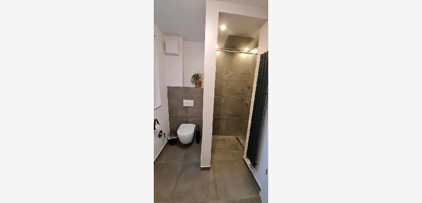 Diese moderne und sehr gepflegte Penthouse-Wohnung bietet zu jeder Jahreszeit einen herrlichen Ausblick. Von der Dachterrasse genießt man sehr privat die Natur. In unmittelbarer Nähe befinden sich Rewe, eine Bushaltestelle, Apotheke, Kiosk, Bäcker … Die Wohnung besteht aus einem Wohn-/Esszimmer mit offener Küche sowie einem weiteren Zimmer. Vom Wohnzimmer und der Küche aus haben Sie Zugang zur großen Dachterrasse mit ca. 50 m² Grundfläche. Die Terrasse wird zur Hälfte der Grundwohnfläche dazugerechnet. Bei Bedarf ist es möglich, sich durch eine Trennwand ein weiteres kleines Zimmer einzurichten. Ausstattungsmerkmale der Wohnung: Offene Küche mit bodentiefen Fenstern für zusätzliches Licht Hinter der Küche befindet sich eine Speisekammer Gemütlicher Wohnbereich mit vielen Fensterelementen Große Regendusche Einzigartige Dachterrasse mit Ausblick ins Grüne Bodenbeläge: Fliesen und Parkett Eigener Kellerraum Stellplatz (anmietbar) Zur Wohnung gehört außerdem ein Gemeinschaftsgarten, der jederzeit nutzbar ist. Zur Miete kommen je nach Eigenverbrauch die Heizkosten hinzu.