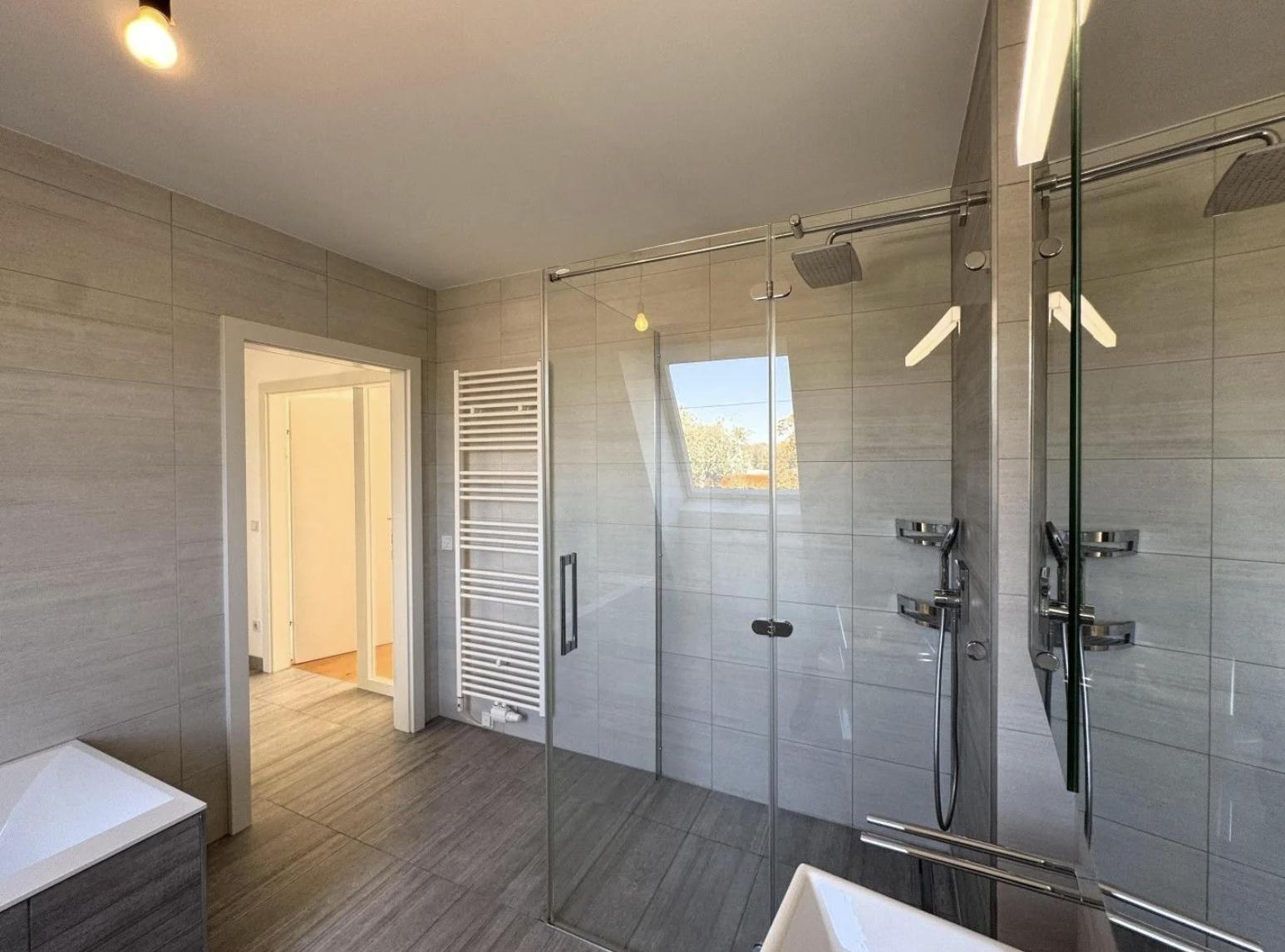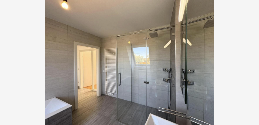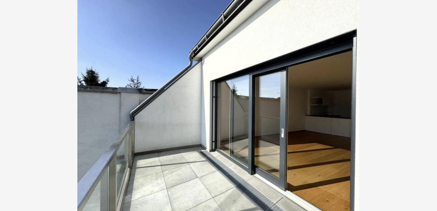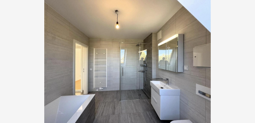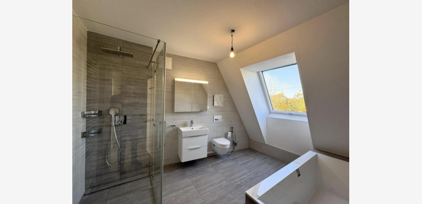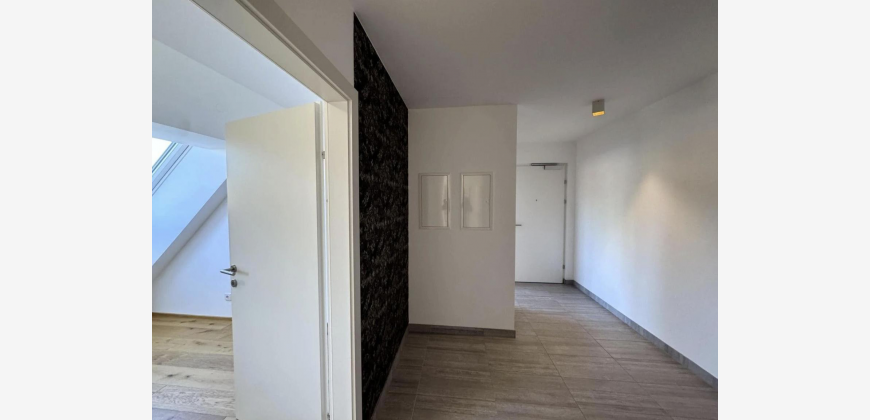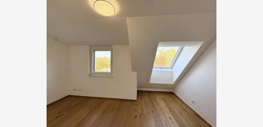 Wohnung in Bornheim - Nähe Comeniusstraße Diese Wohnung befindet sich in einer ruhigen und gleichzeitig zentralen Lage in der Comeniusstraße, Bornheim. Sie liegt im ersten Dachgeschoss eines gepflegten Hauses und bietet eine lichtdurchflutete, großzügige Raumaufteilung. Der Eingangsbereich bietet ausreichend Platz für eine Garderobe. Von dort aus gelangt man direkt zu den beiden Schlafzimmern, zwei Bädern sowie einem praktischen Wirtschaftsraum. Das geräumige Wohnzimmer mit offener Küche und Zugang zur Loggia rundet das Gesamtbild ab. Die Ausstattung der Wohnung ist hochwertig und auf modernsten Komfort sowie Energieeffizienz ausgelegt. Sie umfasst unter anderem elektrische Raffstores, eine Sicherheitstür, individuell regulierbare Fußbodenheizung, edlen Eichenparkett, dreifachverglaste Fenster und einen separaten Kellerraum. Ein Stellplatz in der hauseigenen Tiefgarage ist bereits im Mietpreis enthalten. Die monatliche Gesamtmiete beträgt 1.448,22 EUR (inkl. Küche von Bulthaup, Miele-Geräten und Tiefgaragenstellplatz). Die Wohnung ist ab sofort verfügbar.