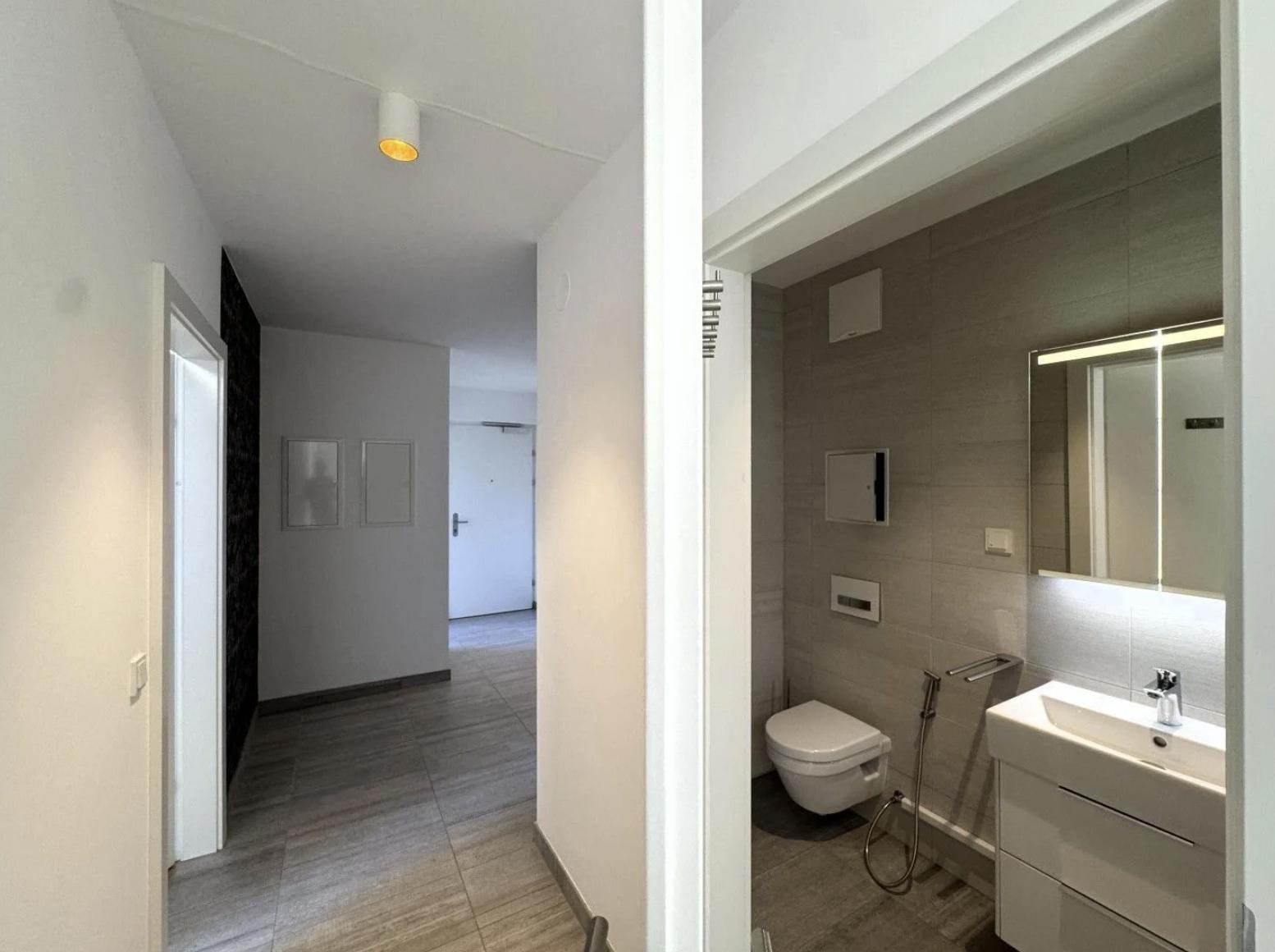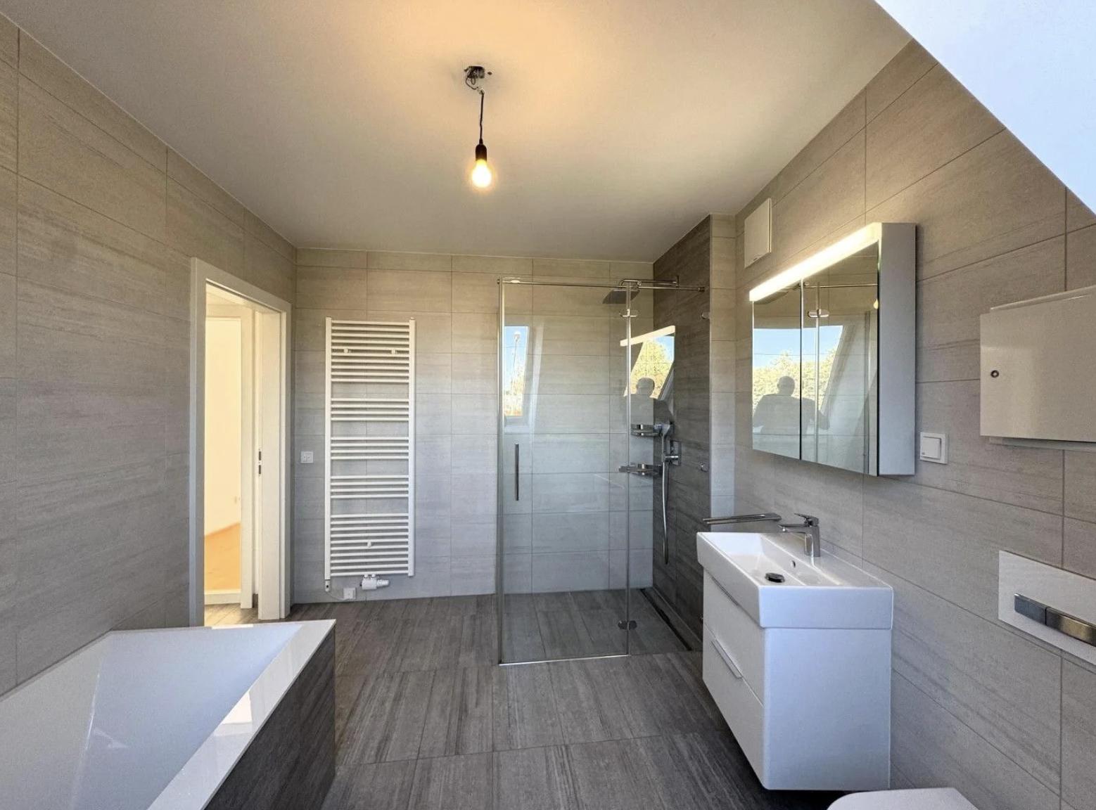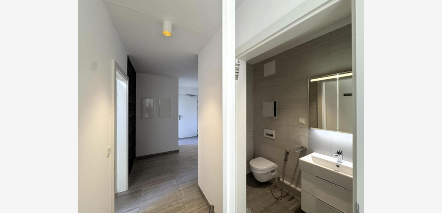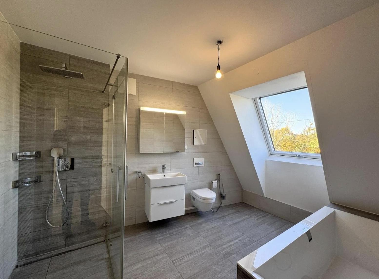 Wohnung in Bornheim - Nähe Comeniusstraße Diese Wohnung befindet sich in einer ruhigen und gleichzeitig zentralen Lage in der Comeniusstraße, Bornheim. Sie liegt im ersten Dachgeschoss eines gepflegten Hauses und bietet eine lichtdurchflutete, großzügige Raumaufteilung. Der Eingangsbereich bietet ausreichend Platz für eine Garderobe. Von dort aus gelangt man direkt zu den beiden Schlafzimmern, zwei Bädern sowie einem praktischen Wirtschaftsraum. Das geräumige Wohnzimmer mit offener Küche und Zugang zur Loggia rundet das Gesamtbild ab. Die Ausstattung der Wohnung ist hochwertig und auf modernsten Komfort sowie Energieeffizienz ausgelegt. Sie umfasst unter anderem elektrische Raffstores, eine Sicherheitstür, individuell regulierbare Fußbodenheizung, edlen Eichenparkett, dreifachverglaste Fenster und einen separaten Kellerraum. Ein Stellplatz in der hauseigenen Tiefgarage ist bereits im Mietpreis enthalten. Die monatliche Gesamtmiete beträgt 1.448,22 EUR (inkl. Küche von Bulthaup, Miele-Geräten und Tiefgaragenstellplatz). Die Wohnung ist ab sofort verfügbar.