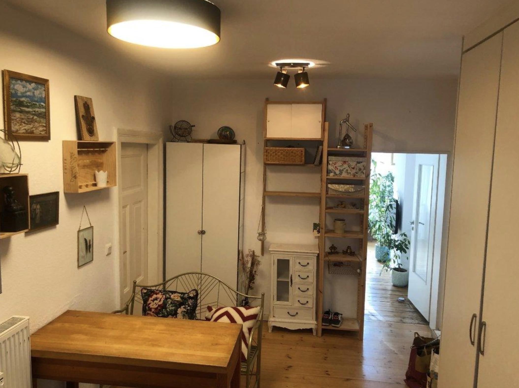 Gut geschnittene und helle Wohnung im 1. OG - Großes Wohnzimmer mit leicht abgetrenntem Arbeitsplatz - Geräumige voll ausgestattete Küche mit Essplatz - Badezimmer mit Badewanne und WC - Schlafzimmer Die Wohnung wird unmöbliert vermietet. Die Küche gehört zur Wohnung und ist voll ausgestattet. Die Wriezener Straße ist eine Abzweigung von der Osloer Straße. Die nächsten öffentlichen Verkehrsmittel sind: • Bushaltestelle Soldiner Str./Prinzenallee (3 Minuten entfernt, M27, 255) • Straßenbahnstation Grüntaler Str. (5 Minuten entfernt, M13, 50) • S-Bahnhof Bornholmer Str. (10 Minuten entfernt, S1, S2, S25, S26, S8, S85) • U-Bahnhof Pankstr. (10 Minuten entfernt, U8) Es dauert ungefähr 15 Minuten zu Fuß zum Gesundbrunnen-Center und zum Bahnhof Gesundbrunnen. Die Straße ist eine ruhige Nebenstraße der Soldiner Straße. Ein Penny-Markt befindet sich 4 Minuten entfernt. Es gibt jedoch auch Lidl, Rewe, Aldi, Kaufland und verschiedene türkische Supermärkte in der Umgebung.