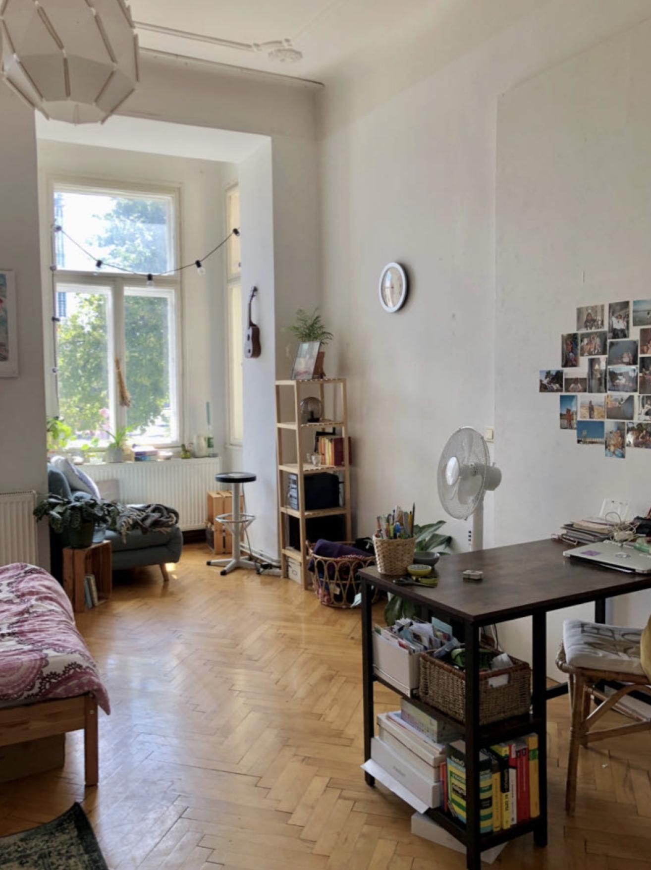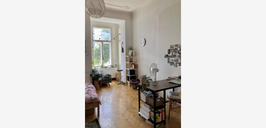 Ich bin gezwungen, meine charmante Altbauwohnung aufzugeben und suche dementsprechend einen neuen Mieter, gerne auch eine WG, der hier einziehen möchte. Die Wohnung bietet 95m^2 Wohnfläche und kann optimal als 2- oder 3-Personen-WG genutzt werden. Sie besticht durch hohe Decken, mit Stuck versehen (in 2 der 3 Schlafzimmer) und Fischgrätparkett, das in jedem Schlafzimmer vorhanden ist. Alle Zimmer sind separat zugänglich. Langfristige Mieter bevorzugt. Details zu den Zimmern: 1 Zimmer: Ungefähr 22m^2, mit Stuck, Ausrichtung zur Straßenseite 2 Zimmer: Circa 25m^2, mit Stuck, Ausrichtung zur Straßenseite, kleiner Balkon, Kamin 3 Zimmer: Etwa 17m^2, zum Innenhof ausgerichtet, mit vollständiger Fensterfront Die Wohnung kann unmöbliert oder teilweise möbliert übergeben, wobei eine Ablöse auf Verhandlungsbasis möglich ist falls man ein paar der Möbel haben möchte.