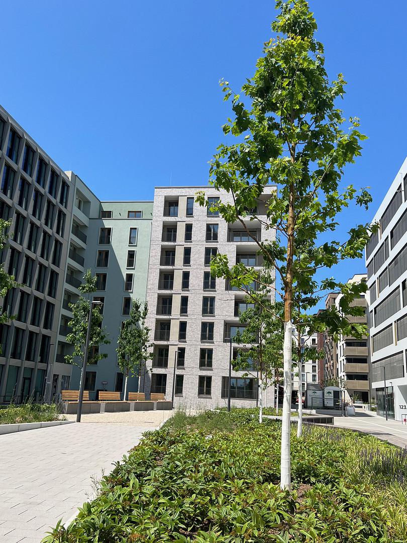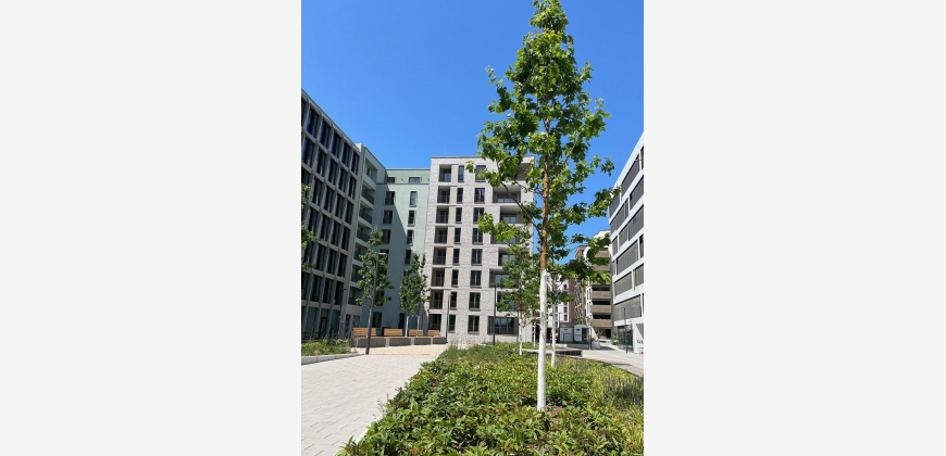 Ausstattungsmerkmale: KfW-Effizienzhaus 55 Begrünter Innenhof Ausdrucksvolle Fassade Einzelhausarchitektur Tiefgarage Fahrradstellplätze Lichte Raumhöhen von ca. 2,60 m bis ca. 2,80 m Balkone und Loggien Dreifachverglasung Fußbodenheizung Parkett Malervlies Elektrische Rollläden Einbruchhemmende Türen Videogegensprechanlage Rainshower Design-Siphon Handtuchheizkörper Offene Küche Schlafzimmer mit Loggia Weiteres Zimmer mit Loggia 2 Badezimmer Abstellräume mit Waschmaschinenanschluss Lagebeschreibung: Die Wohnung liegt mitten im Frankfurter Trendviertel Ostend. Es befindet sich nahe der Innenstadt und bietet schnellen Zugang zu den zentralen Verkehrswegen. Gleichzeitig gibt es viele naturnahe Erholungsorte in direkter Nachbarschaft. Stadtwald und Main bieten ideale Joggingstrecken und eine Radtour durch den Frankfurter Grüngürtel gehört nach wie vor zu den schönsten Freizeitaktivitäten der Stadt. Wer frische Luft genießen möchte, findet im nahegelegenen Ostpark und dem Hafenpark zwei beliebte Parklandschaften. Für Pendler gibt es eine ausgezeichnete Anbindung: Wer morgens mit den öffentlichen Verkehrsmitteln zur Arbeit fahren möchte, profitiert von der nahen S-Bahn-Station Ostbahnhof. Auch Straßenbahn und Bus halten in unmittelbarer Nähe und verbinden das Ostend mit dem Hauptbahnhof, der Innenstadt und anderen Stadtteilen. Den Frankfurter Flughafen erreicht man vom OstStern mit dem Auto in weniger als 20 Minuten und mit der S-Bahn in 21 Minuten. Das Freizeitangebot in der Umgebung ist ebenfalls unschlagbar: Der Hafenpark ist nur 300 Meter entfernt, es gibt Sportplätze, Spielplätze und diverse Fitnessstudios in unmittelbarer Nähe. Zudem ist die Nahversorgung bestens: Einer der größten Supermärkte Frankfurts befindet sich in direkter Nachbarschaft, ebenso Bäcker, Metzger und Restaurants.