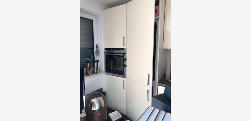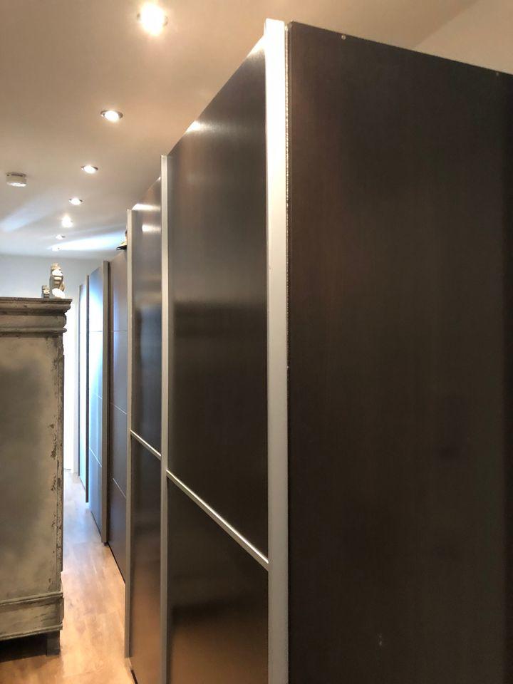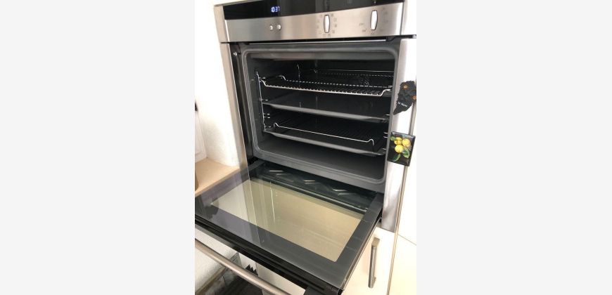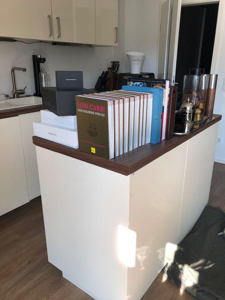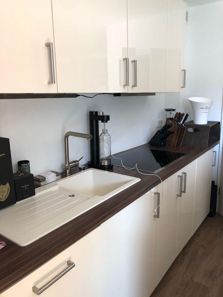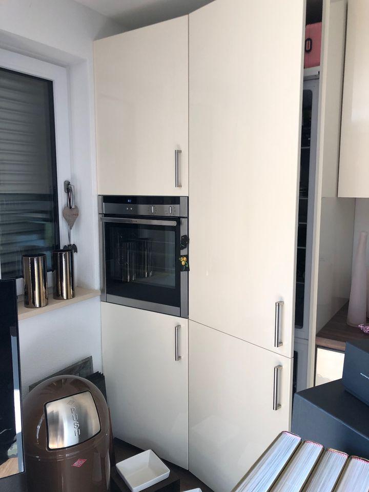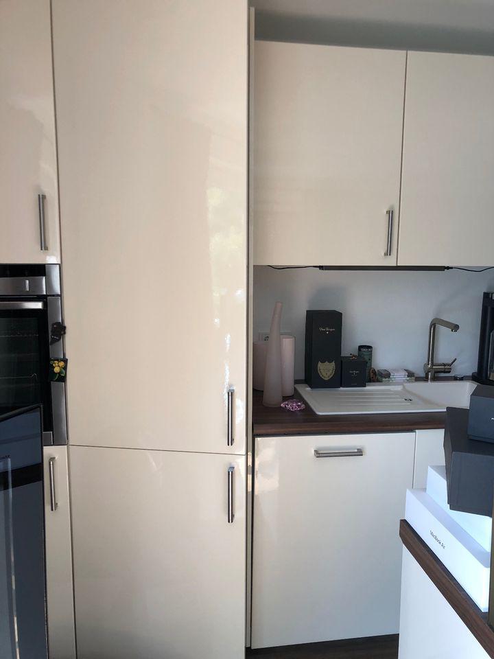Luxuriöse Neubau-Wohnung mit Terrasse im wunderschönen Waldtrudering. Designer-Bad mit freistehender Badewanne und bodentiefer, begehbarer Dusche in einem ca. 15 m² großen Bad mit Fenster. Sehr hochwertiger Vinylboden in edlem Graubraun, bodentiefe Fenster im Schlafzimmer und Wohnzimmer sowie eine große Terrasse. Einbauküche mit Markengeräten (Backofen Slide and Hide von Neff, Geschirrspüler und Induktionskochfeld) und diversen Einbauschränken mit Kochinsel und großem Kühlschrank mit separatem Tiefkühler. Da der Vormieter kaum in der Wohnung gelebt hat, ist die Küche wie neu - siehe Fotos. Gleiches gilt für die luxuriösen Schwebetürenschränke. Diese sind optisch in absolut neuwertigem Zustand, in einem edlen Dunkelbraun gehalten und farblich passend im Interieur. Zwei Schränke haben eine Länge von 3,80 Metern, ein weiterer Schrank ist etwas älter, hat leichte Gebrauchsspuren und eine Länge von 2,50 Metern.