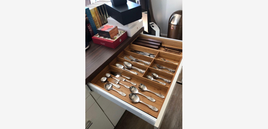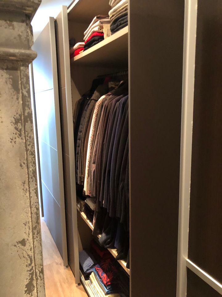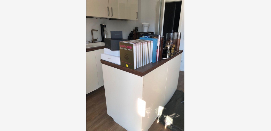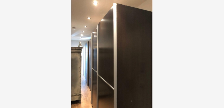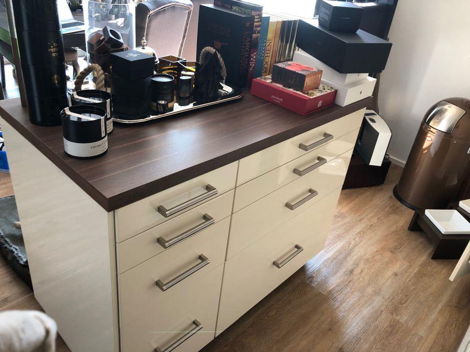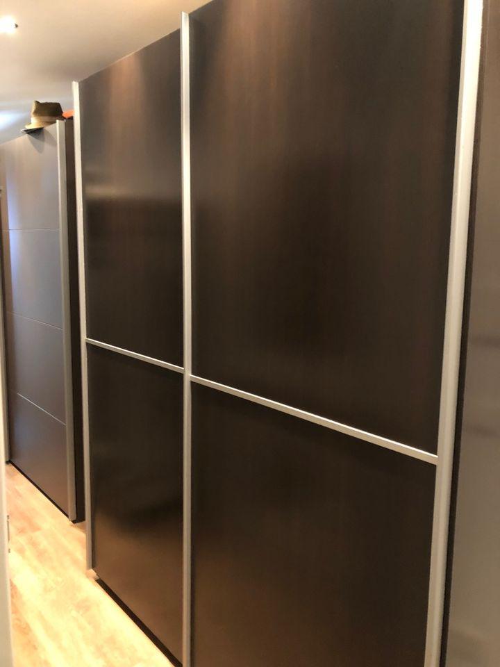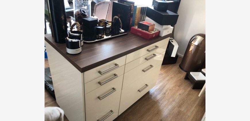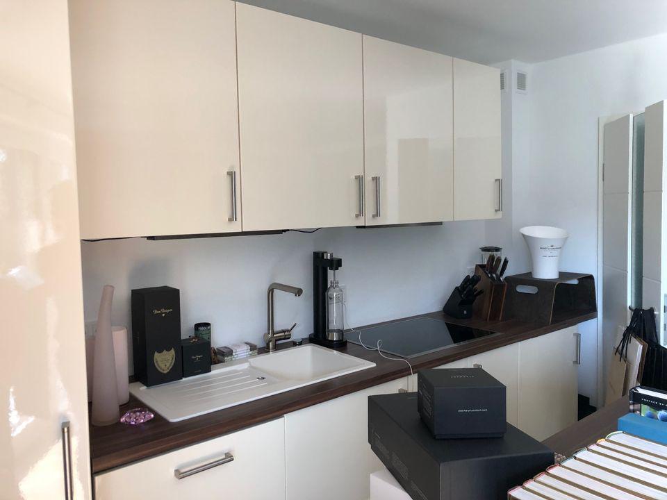 Luxuriöse Neubau-Wohnung mit Terrasse im wunderschönen Waldtrudering. Designer-Bad mit freistehender Badewanne und bodentiefer, begehbarer Dusche in einem ca. 15 m² großen Bad mit Fenster. Sehr hochwertiger Vinylboden in edlem Graubraun, bodentiefe Fenster im Schlafzimmer und Wohnzimmer sowie eine große Terrasse. Einbauküche mit Markengeräten (Backofen Slide and Hide von Neff, Geschirrspüler und Induktionskochfeld) und diversen Einbauschränken mit Kochinsel und großem Kühlschrank mit separatem Tiefkühler. Da der Vormieter kaum in der Wohnung gelebt hat, ist die Küche wie neu - siehe Fotos. Gleiches gilt für die luxuriösen Schwebetürenschränke. Diese sind optisch in absolut neuwertigem Zustand, in einem edlen Dunkelbraun gehalten und farblich passend im Interieur. Zwei Schränke haben eine Länge von 3,80 Metern, ein weiterer Schrank ist etwas älter, hat leichte Gebrauchsspuren und eine Länge von 2,50 Metern.