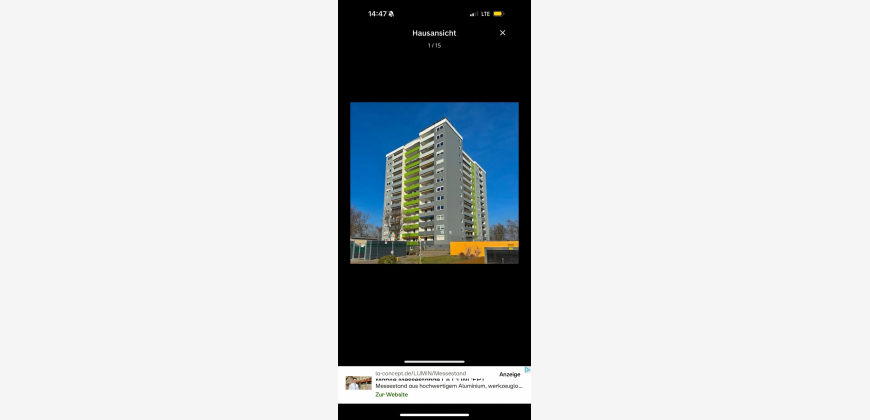 ,5-Zimmer-Wohnung in schöner, ruhiger Lage von Limburgerhof – ca. 50 m² (Privatverkauf) Zum Verkauf steht eine gepflegte 1,5-Zimmer-Wohnung in attraktiver und ruhiger Wohnlage von Limburgerhof. Die Wohnung befindet sich im 3. Obergeschoss eines gepflegten Mehrfamilienhauses. Auf ca. 50 m² Wohnfläche überzeugt die Wohnung durch eine durchdachte Raumaufteilung. Sie verfügt über einen hellen Wohn-/Schlafbereich, eine separate Küche sowie ein Badezimmer. Große Fenster sorgen für viel Tageslicht und eine angenehme Wohnatmosphäre. Die Wohngegend ist ruhig und dennoch gut angebunden. Öffentliche Verkehrsmittel, Einkaufsmöglichkeiten, Ärzte sowie weitere Einrichtungen des täglichen Bedarfs sind bequem erreichbar. Details & Highlights: • 1,5 Zimmer • ca. 50 m² Wohnfläche • Separate Küche und Badezimmer • 3. Obergeschoss • Ruhige und schöne Lage in Limburgerhof • Gepflegtes Mehrfamilienhaus Vermietung & Kosten: • Aktuell vermietet • Warmmiete: 720 € • Hausgeld: 200 € Kaufpreis: 120.000 € Die Wohnung eignet sich ideal für Kapitalanleger sowie perspektivisch auch für Eigennutzer. Bei Interesse freuen wir uns über Ihre Kontaktaufnahme.