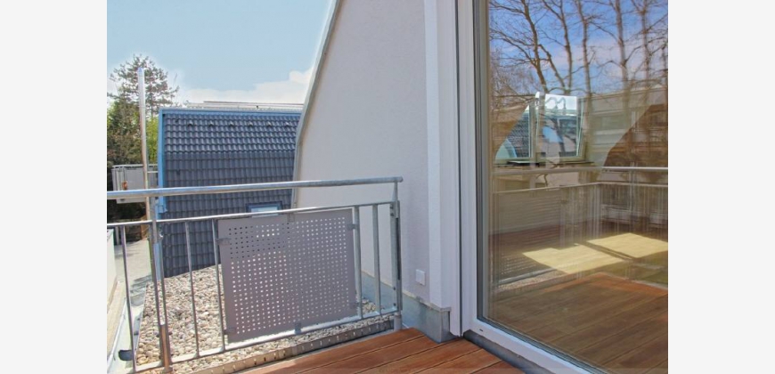 Die Neubauwohnung liegt im 2. Obergeschoss eines kleinen Mehrfamilienhauses. Über den Aufzug erreichen Sie die Wohnung barrierefrei. Im Dachgeschoss gibt es insgesamt nur 2 Wohnungen. Der Flur ist langgezogen und führt zum Wohnbereich mit offener Küche. Die bodentiefe Verglasung zur Dachterrasse hin und die Dachflächenfenster sorgen für sehr viel Helligkeit. Der Balkon ist wie eine Dachterrasse angelegt und nach Süd-Osten ausgerichtet. Die Stellmöglichkeiten im Wohnzimmer sind durch die Dachschrägen nur leicht eingeschränkt. Auch das Schlafzimmer lässt sich gut möblieren und bietet Raum für einen großen Kleiderschrank. Im Badezimmer gibt es ein Fenster. Ruhig gelegen in Forstenried und nahe zur U-Bahn-Haltestelle Basler Straße, finden Sie in der Umgebung eine perfekte Infrastruktur mit vielen Einkaufsmöglichkeiten in Gehnähe vor. Bitte senden Sie mir eine Anfrage. Bitte geben Sie Ihre Daten dabei vollständig an. Vielen Dank!