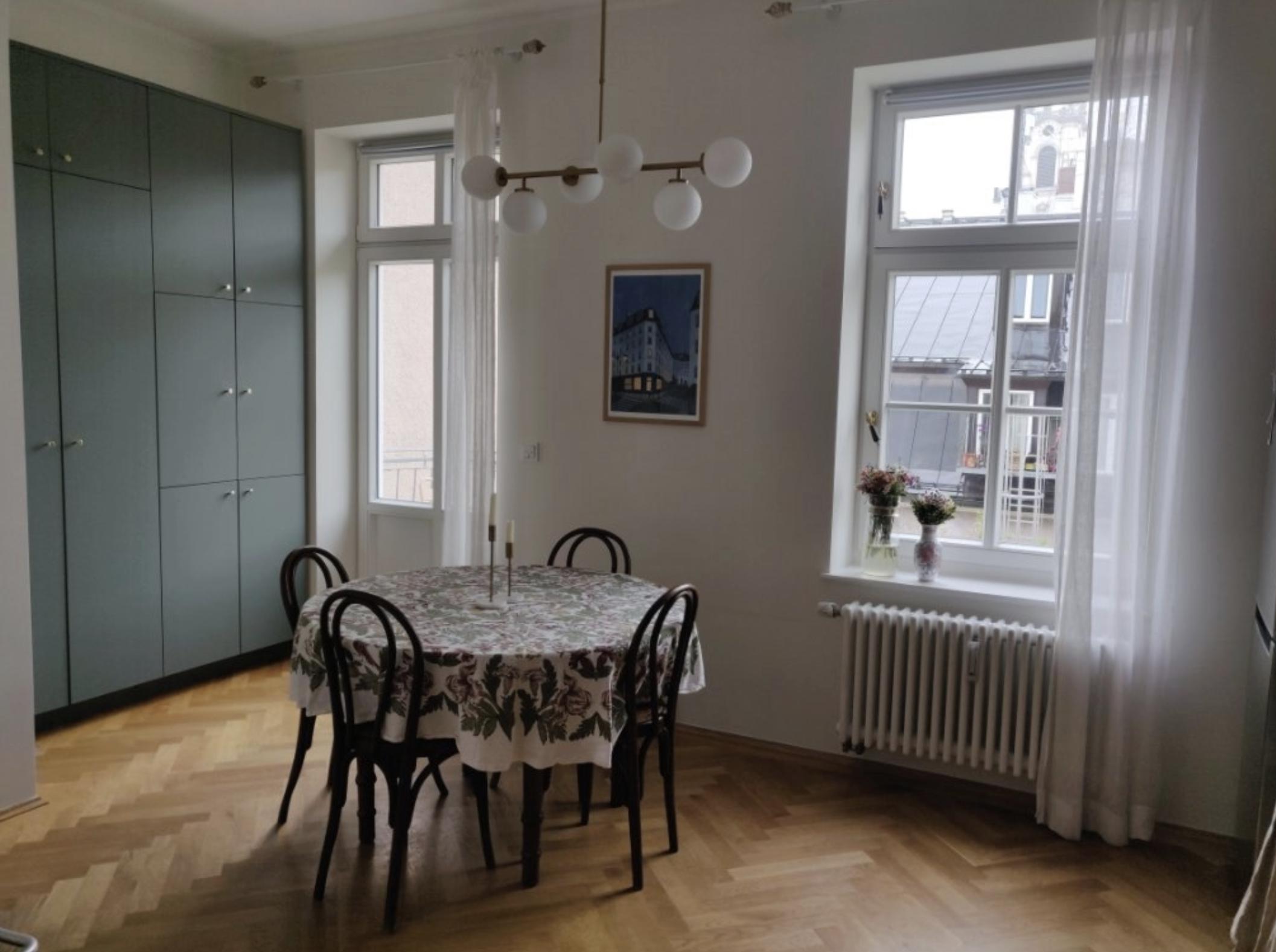 Die Altbauwohnung in einem schönen Altbauhaus liegt im 4. OG (Aufzug vorhanden) und bietet 2 schöne und helle Zimmer, eine grosse Küche, Badezimmer mit Dusche und einen Balkon. Das Haus hat einen Aufzug. Die Wohnung wird unmöbliert vermietet, nur die voll ausgestattete Küche bleibt in der Wohnung. Ab sofort unbefristet zu vermieten. Bitte um Anfrage per Email und einer kurzen Beschreibung Ihrer Person! Besichtigungen sind unter der Woche ab 17 Uhr möglich. Kaltmiete: 720 € Nebenkosten: + 90 € Heizkosten: + 70 € Gesamtmiete: 880 € Kaution: 2100 €
