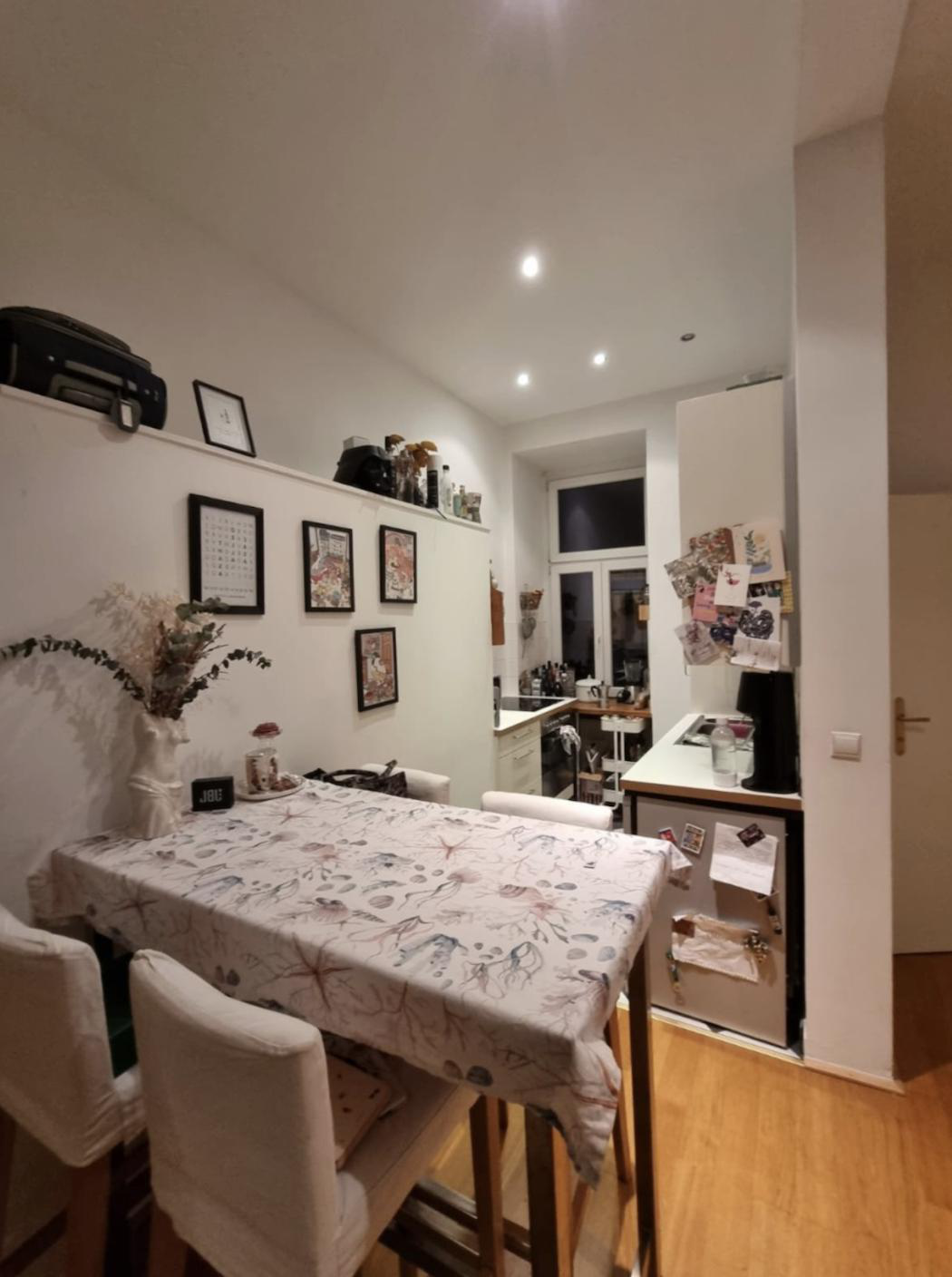 • 58qm: Wohnzimmer, Schlafzimmer, Bad + WC getrennt, Küche + Vorraum • Wohnung unmöbliert, Waschmaschine, Geschirrspüler vorhanden • Miete warm: 645€ pro Monat • Kaution: 3 Nettokaltmieten • Ab sofort verfügbar Ich freue mich auf eure Nachrichten! Liebe Grüße, Theresa