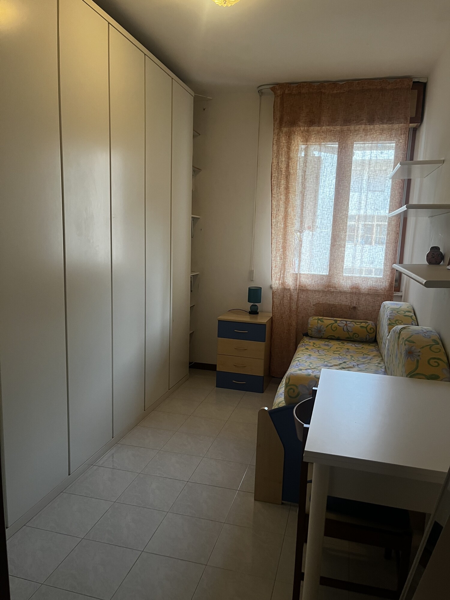 CONTRATTO DI AFFITTO 3+2- Appartamento di tre vani e mezzo arredato, in ottimo stato di manutenzione, ubicato al quarto piano con ascensore e composto da: soggiorno con cucina a vista e accesso ad un balcone, disimpegno notte, camera matrimoniale, camera singola, bagno con vasca e doccia c.f e ripostiglio. Termoautonomo, condizionatore nel reparto giorno. A corredo della proprietà garage nel seminterrato con acqua e luce.
