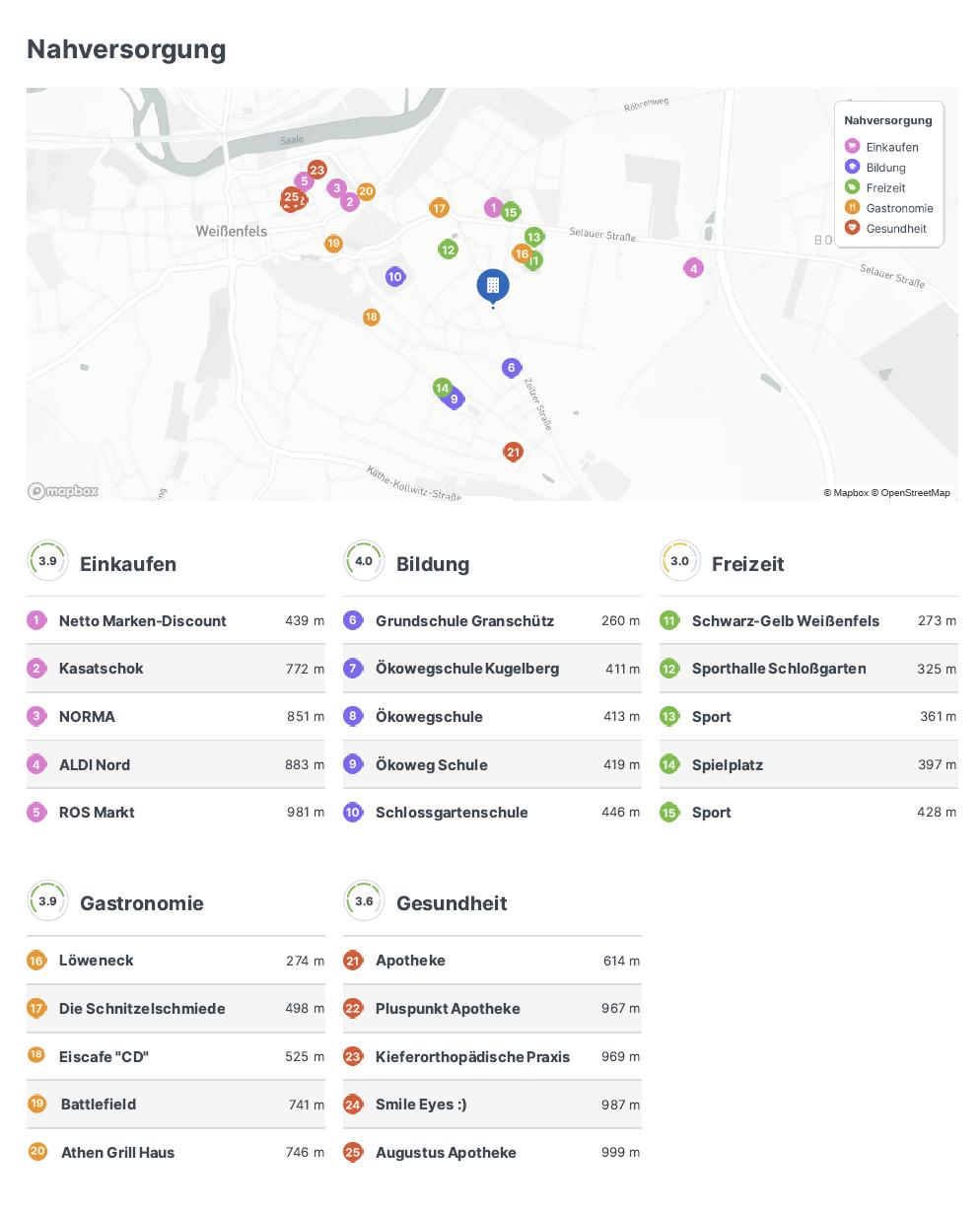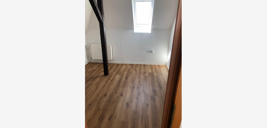 Die 2-Raum-Wohnung befindet sich im DG eines florierenden Mehrfamilienhauses. Eine Einbauküche ist bereits vorhanden und im guten Zustand. Die Wohnung ist frisch renoviert und wird provisionsfrei übergeben. Das Haus steht zentrumsnah in der Altstadt und hat eine gute Verkehrsanbindung. Im Hinterhof ist ein großer Garten, dieser steht den Mietern zur Verfügung. Ein Parkplatz für Ihr Fahrzeug finden Sie in den umliegenden Straßen. Die Wohnung hat ein Kinderzimmer mit Durchgangszimmer, Tageslichtbad mit Dusche, Küche sowie Wohnzimmer. Das Dach des Hauses wurde im Jahr 2023 erneuert, inkl. 3-Fach verglaster Dachfenster. # Weitere Angaben Verfügbar ab: 01.05.2026 Kaltmiete: 375 EUR Betriebskosten / Heizung: 150 EUR Warmmiete: 525 EUR Kaution: 1000 EUR Objektzustand: Gut Qualität der Ausstattung: Standard Bodenbelag: Laminat, Vinyl # Lagebeschreibung Weißenfels ist eine charmante Stadt in Sachsen-Anhalt, Deutschland. Sie liegt an der Saale und ist bekannt für ihre gut erhaltene Altstadt mit historischen Gebäuden wie dem Schloss Neu-Augustusburg und der Stadtkirche St. Marien. Die Stadt hat eine reiche Geschichte, die bis ins Mittelalter zurückreicht, und bietet Besuchern eine Vielzahl von kulturellen Sehenswürdigkeiten und Veranstaltungen. Weißenfels ist auch für seine traditionelle Handwerkskunst und seine malerische Landschaft bekannt. Ein Besuch in Weißenfels lohnt sich auf jeden Fall für alle, die Geschichte, Kultur und Natur gleichermaßen schätzen. Weißenfels liegt im Süden von Sachsen-Anhalt und gehört zum Burgenlandkreis. Verkehrsmäßig ist die Stadt über die Autobahnen 9 und 38 sowohl auch über die Bundesstraßen 91, 87 und 176 gut zu erreichen. Alle Geschäfte und Einrichtungen des täglichen Bedarfes, Kindereinrichtungen und Schulen sind ebenso ausreichend vorhanden, wie die Unterbringung und Versorgung für unsere Senioren. Für Kultur und Freizeit bietet die ganze Region vielfältige Beschäftigungs- und Erholungsmöglichkeiten. Auch als Wirtschaftsstandort kann Weißenfels sehr gute Ergebnisse vorweisen. # Energie Energieausweis: E (154,3 kWh/m2*a) Baujahr: 1950 Heizungsart: Zentralheizung Wesentliche Energieträger: Gas