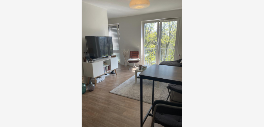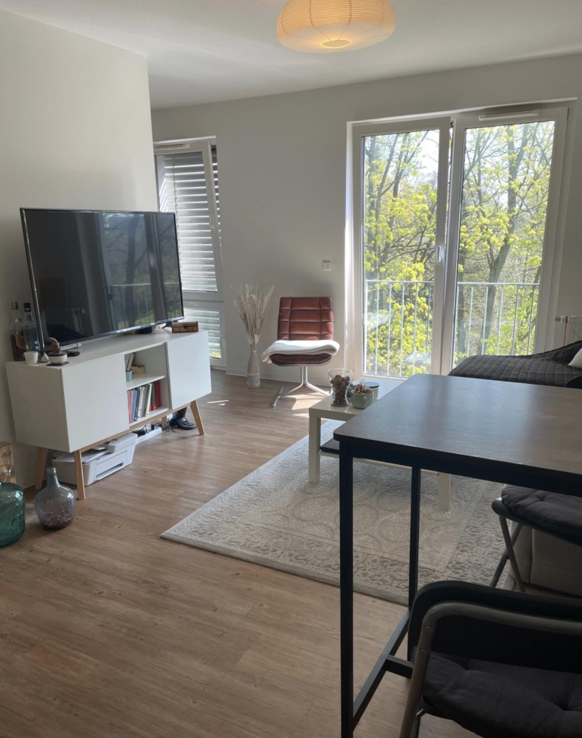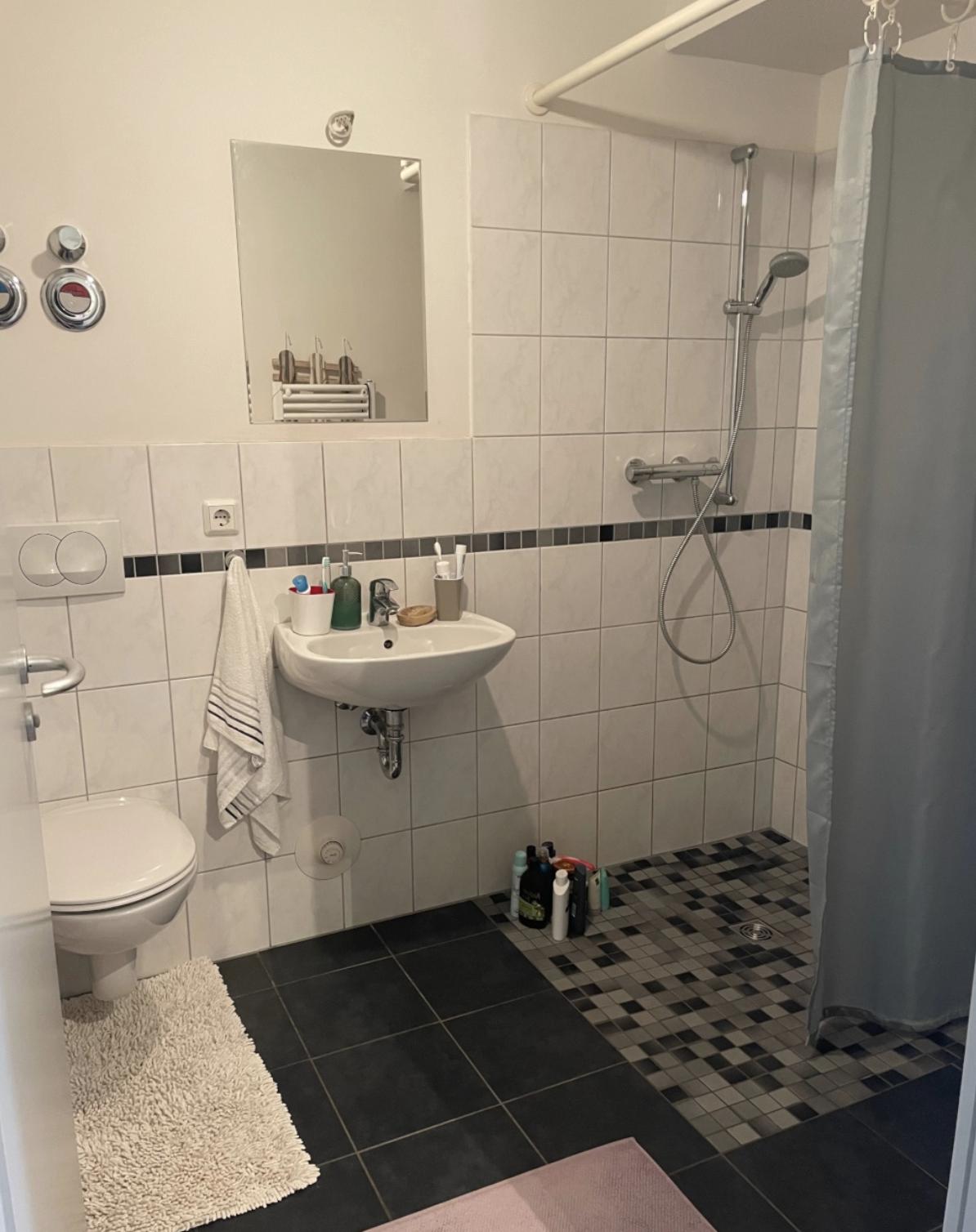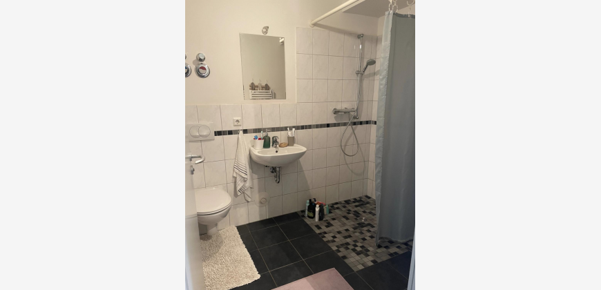 Die Wohnung im 3. OG (Aufzug vorhanden) umfasst 1,5 Zimmer und bietet einen separaten Schlafbereich. Der Wohnbereich beinhaltet eine charmante Küchenzeile, die durch eine Essecke mit einem erhöhten Tisch und Hochstühlen geschickt vom übrigen Wohnraum abgetrennt wird. Die Kochnische ist komplett ausgestattet mit einer Mikrowelle, einem Herd und einem Backofen. Das Badezimmer ist neu und modern und verfügt über eine großzügige, begehbare Dusche. Im Keller steht den Bewohnern ein gemeinschaftlicher Waschraum zur Verfügung, in dem Waschmaschinen und Trockner vorhanden sind. Keine Ablöse. Warmmiete 716 EURO.