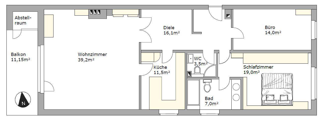Objektdaten Wohnfläche: 113 m² Baujahr: 1981 Lage: Golfstraße, Hamburg (sehr ruhig) Wohnanlage: klein & gepflegt Beschreibung Großzügige, gepflegte Wohnung mit durchdachtem Grundriss. Großer Balkon mit ruhigem Ausblick, voll ausgestattete Einbauküche sowie Tiefgaragenstellplatz. Keine umfassende Renovierung, jedoch sehr gepflegter Zustand. Ausstattung • Großer Balkon • Voll ausgestattete Einbauküche • Tiefgaragenstellplatz • Sehr ruhige Lage Miete Kaltmiete Wohnung: 1.890 € Tiefgaragenstellplatz: 100 € Gesamt kalt: 1.990 € Nebenkosten gemäß Abrechnung
