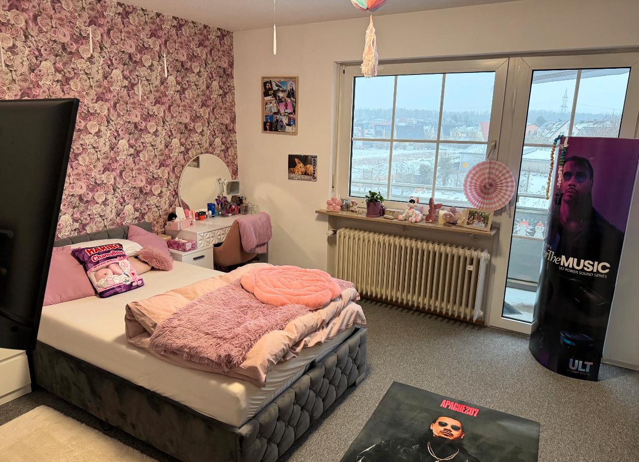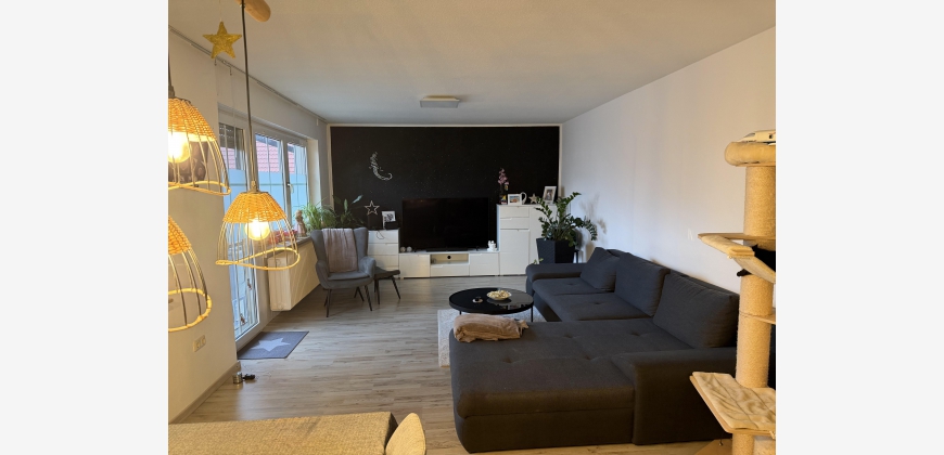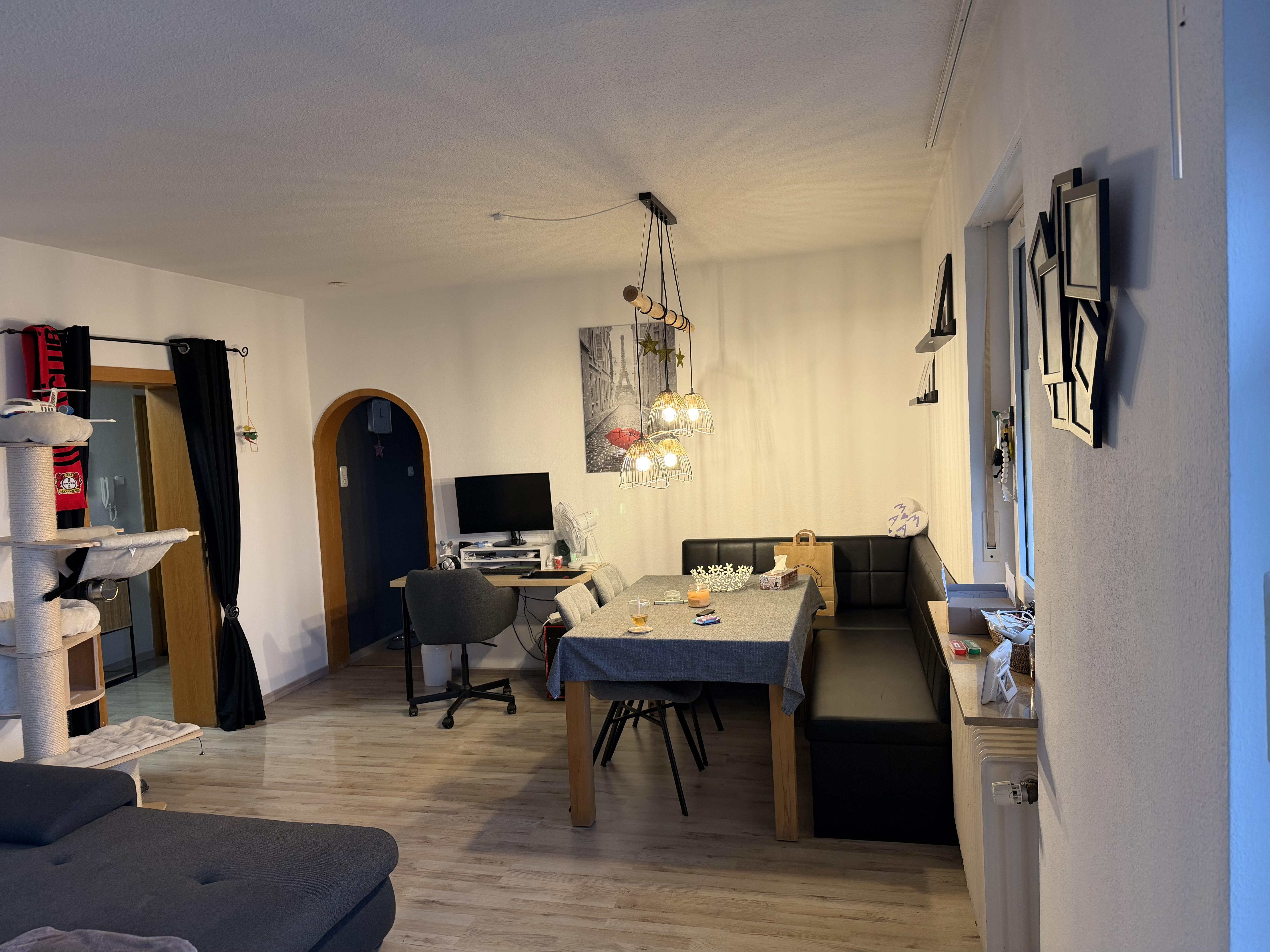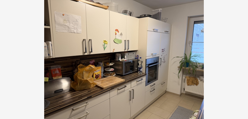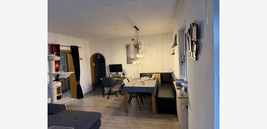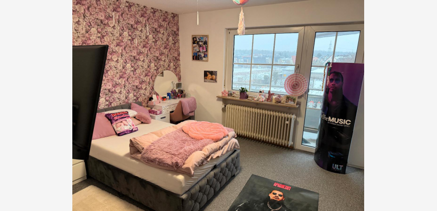 Bezug ab 01.04.2026 Der Wohnraum liegt im 1. Stock des Hauses. Er ist ausgestattet mit einem grosszügigen und hellen Wohn- und Essraum, an den die Küche direkt anschliesst. Die Küche beinhaltet die Einbauküche inkl. aller Geräte. Die zwei Zimmer können als Schlafzimmer, Gäste-, Kinder- oder WG-Zimmer genutzt werden. Das Bad ist mit einer ebenerdigen Dusche ausgestattet. Die beiden Balkons, deren Breite über das ganze Haus geht, befinden sich an der Süd- und Nordseite. Im Erdgeschoss steht eine geschlossene Garage, ein Hobbyraum und eine Abstell- oder Vorratskammer zur Verfügung. Vor dem Haus befindet sich ein weiterer, überdachter Parkplatz innerhalb des Hofes. Hinter dem Haus ist gibt es einen weitläufigen Garten, der nach Belieben genutzt werden kann.