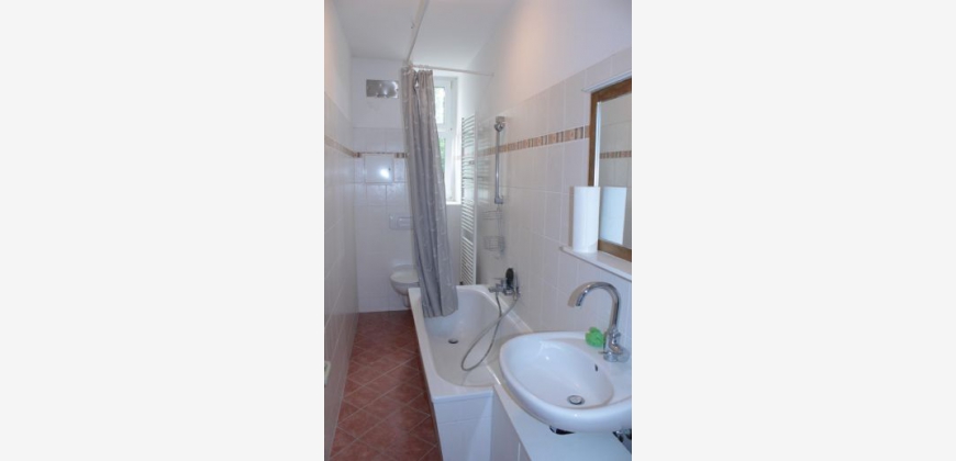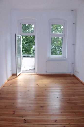 Die hier angebotene Wohnung befindet sich in der 2.Etage des Hinterhauses. Das Balkonzimmer, Küche und Bad weisen in den hinteren Teil des Grundstücks, das Kinderzimmer und das Schlafzimmer haben eine Ausrichtung in den Hof mit Spielplatz. Das Balkonzimmer ist ein Durchgangszimmer zu einem anderen Zimmer, die Wohnung ist daher NICHT für eine WG geeignet! Die genaue Raumaufteilung entnehmen Sie bitte dem inserierten Grundriss. Das moderniesierte Badezimmer verfügt über eine Badewanne, Toilette, Waschbecken und Fenster. Im Rahmen der Modernisierung wurden bereits Isofenster eingebaut. Die Dielen sind klar lackiert, die Wände tapeziert und gestrichen. Die Einbauküche kann gegen einen Abstand vom Vormieter übernommen werden. Dieses Haus ist ein sehr gepflegtes und repräsentatives Mehrfamilienhaus und besteht aus zwei Aufgängen im Vorderhaus und zwei Aufgängen in den Quergebäuden, Der Hof ist begrünt und es gibt einen kleinen Kinderspielplatz.