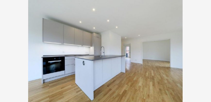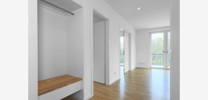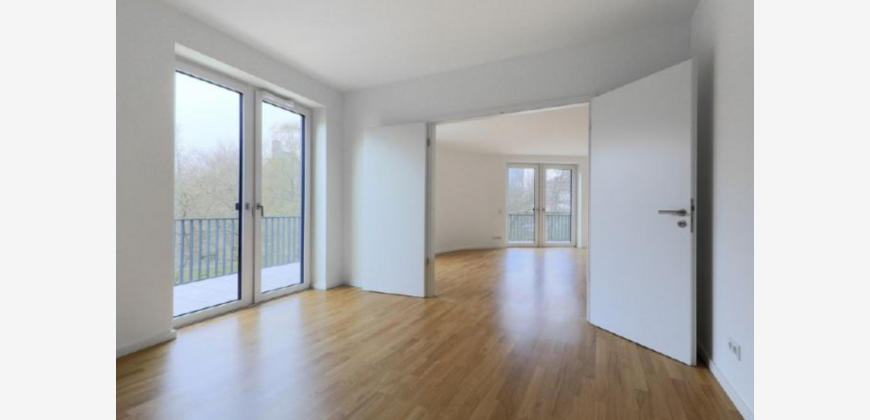 Die Wohnung ist mit Eichenparkett und Feinsteinzeug ausgestattet. Eine offene Küche mit hellen Einbauten befindet sich in dem großzügigen Wohn- und Essbereich mit Zugang auf einen der drei Balkone, der nach Südwesten ausgerichtet ist. Des Weiteren ist die Wohnung mit zwei Duschbädern ausgestattet. Ein Tiefgaragenstellplatz mit Ladestation für Elektroautos gehört dazu. Die Wohnung wird als Neubau-Erstbezug vermietet. Die Kosten für Wasser rechnet der Mieter direkt mit den Versorgungsträgern ab. Die Balkonflächen sind anteilig zu 50 % in der Wohn- und Nutzfläche berücksichtigt.