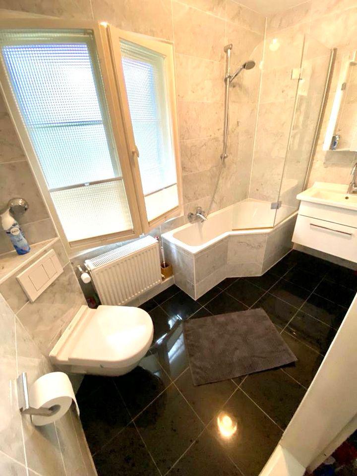 Wunderschöne Wohnung in Berlins Gartenstadt Frohnau mit bester Anbindung. 25 Minuten zur Friedrichstraße. Die Wohnung wird unmöbliert vermietet. Die Wohnung (70 m²) befindet sich in unmittelbarer Nähe zum Ludolfingerplatz und Zeltinger Platz. 3 Minuten Fußweg vom S-Bahnhof Frohnau. Viele Geschäfte in unmittelbarer Nähe. Frohnau ist eine der schönsten und begehrtesten Wohngegenden der Hauptstadt und ein sehr geschütztes Gebiet. Berlin-Frohnau zeichnet sich insbesondere durch die Bebauung mit Villen und kleineren Mehrfamilienhäusern sowie seine zahlreichen Grünanlagen aus. Viele Einzelhandelsgeschäfte, Banken, Ärzte und Restaurants/Cafés befinden sich an den beiden Plätzen – dem Zentrum von Frohnau. Außerdem befindet sich hier der S-Bahnhof Frohnau (S1) mit direkten Verbindungen zur Friedrichstraße und zum Potsdamer Platz sowie die Buslinien 125, 220 und N20 in ca. 200 m Entfernung. Eine Anschlussstelle der Berliner Stadtautobahn mit Verbindungen ins Stadtzentrum oder ins Umland ist leicht erreichbar. Auch ideal für Home-Office, superschneller 1 Mbit Internetanschluss. Die Eingangstür des Hauses ist motorisiert und hat einen modernen Fingerabdrucksensor. Die anderen Außentüren wurden ebenfalls vor kurzem erneuert und haben einen besonderen Schutz. Die Wohnung befindet sich im zweiten Stock und verfügt über ein eigenes Marmorbad. Der große begehbare Kleiderschrank bietet viel Platz. Die Einbauküche mit Backofen wurde kürzlich eingebaut. Die schöne Sitzecke in der Küche ist ideal für bis zu drei Personen. Langfristig zu vermieten. In 1.150,- EUR sind Miete, Strom, Heizung, Wasser, Müllabfuhr etc. enthalten.
