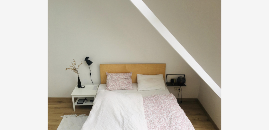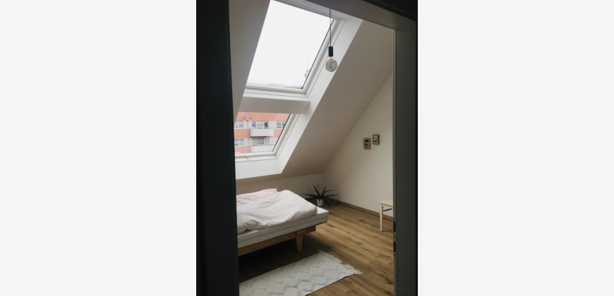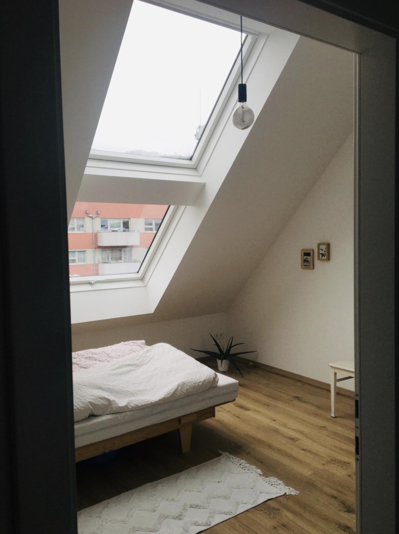 Hochwertige, neuwertige 51 Quadratmeter-Wohnung, Aufzug, Internet und Außenjalousien in angenehmem Ambiente und folgender Raumaufteilung: WOHNKÜCHE: Ausgestattet mit Küchenblock (Kühlschrank inkl. Gefrierfach, Geschirrspüler, Backofen). Einen ausdehnbaren Esstisch, Acapulco-Stuhl, Sofa und ein Bücherregal. Große Fensterfront/Dachgaube samt Außenjalousien. EINGANGSBEREICH: Schlicht gehalten mit einem Spiegel und einigen Kleiderhaken. BADEZIMMER: Bietet eine Walk-in-Dusche, Waschtisch, Stauraumregal, Waschmaschine und Toilette. SCHLAFZIMMER: Ausgestattet mit einem Bett, einem geräumigen Kleiderschrank und zwei Dachfenstern, ideal zum Sternegucken oder mit Außenjalousien abzudunkeln. Unbefristet, ab sofort verfügbar, keine Ablöse. Die Wohnung kann nach Absprache auch unmöbliert vermietet werden! Ich freue mich auf deine Kontaktaufnahme!