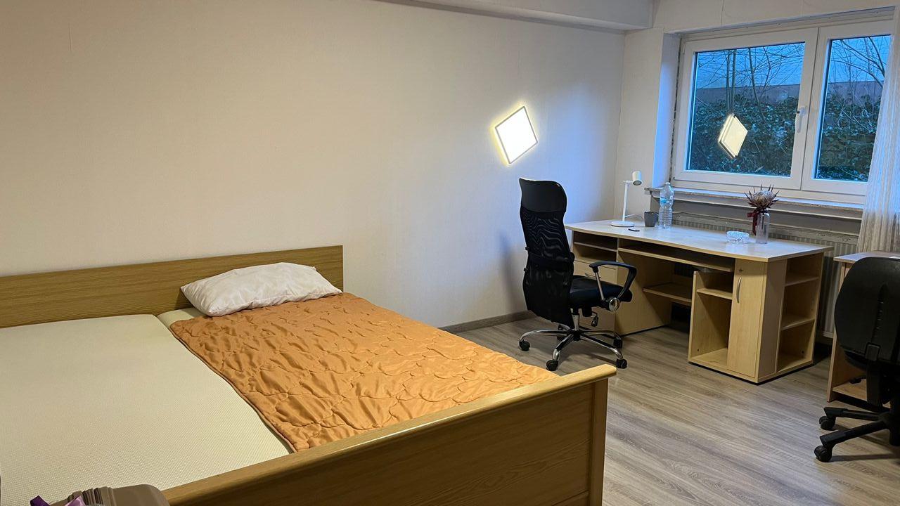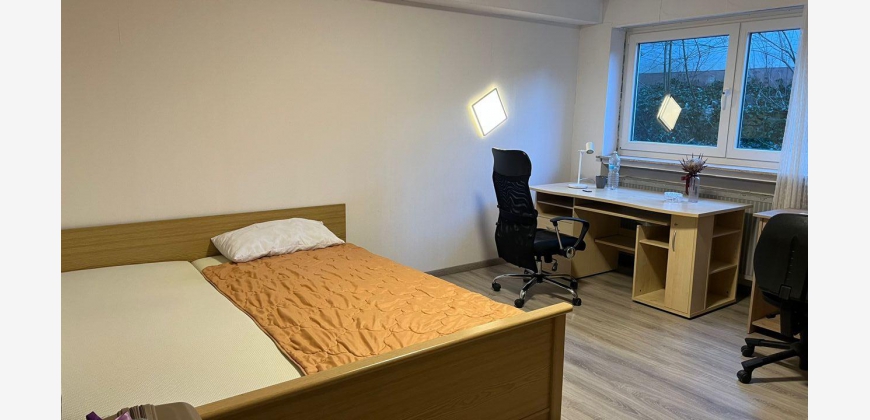 Vollständig möbliertes Zimmer an eine oder an zwei Personen zu vermieten. Küche und Badezimmer befinden sich in gemeinschaftlicher Nutzung. Schöner und großer Garten kann ebenfalls benutzt werden. Waschmaschine, Trockner und Spülmaschine und alle erforderlichen Küchengeräte sind vorhanden. Pauschale Warmmiete für eine Person ist 480 Euro. Kaution ist 1050 €.