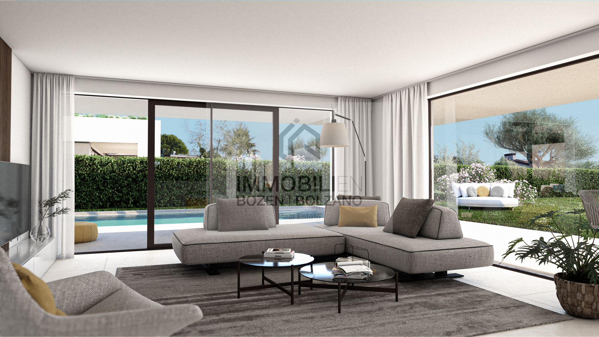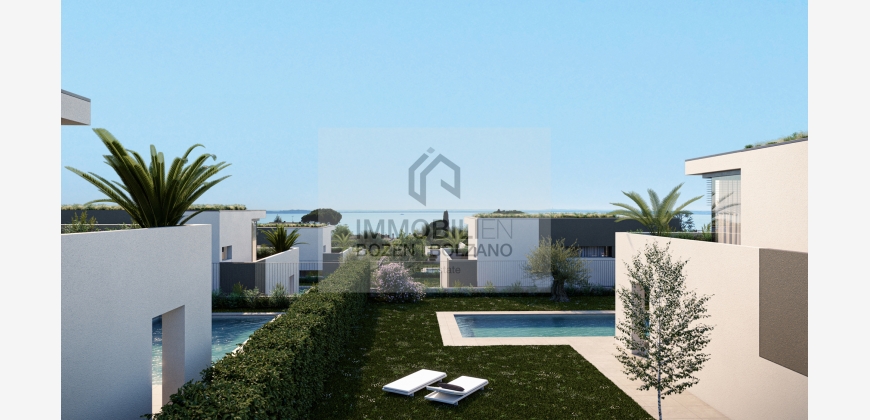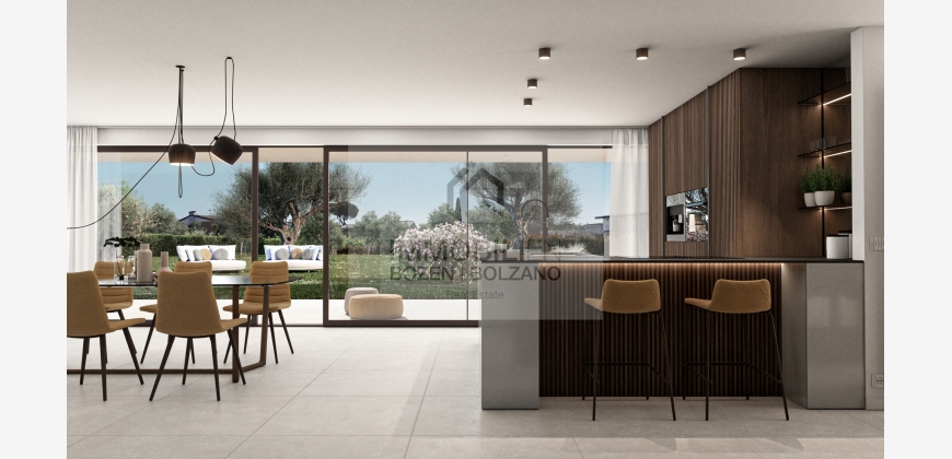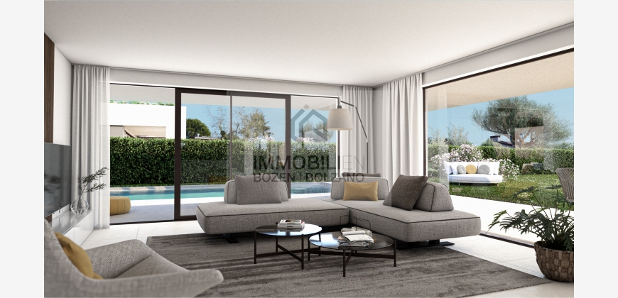 Die Villa besitzt einen großen Garten, ein eigenes Schwimmbad sowie einen privaten Zugang zum Strandabschnitt, wo jede Villa ein eigenes abschließbares Depot-Abteil besitzt für Liegen, Schwimmsachen usw. Die Villa erstreckt sich auf einem Stockwerk und hat eine Fläche von insgesamt 156,32 m². Sie werden nach Klimahausstandart „A Nature“ gebaut. Die Villa besteht aus einem großen Wohn- und Esszimmer mit Küche, 3 Schlafzimmern, 3 Bädern und einem Waschraum. Vom Wohnzimmer gelangt man durch eine Schiebetür direkt auf die Terrasse, die ideal für einen gemütlichen Brunch oder einen Aperitif unter dem Sternenhimmel ist. Angrenzend befindet sich auch der große Garten und der Pool, der zu einer erfrischenden Abkühlung einlädt. Die angegebenen Informationen sind indikativ und können Abänderungen unterliegen.Moniga del Garda ist ein Geheimtipp. Es ist ein wunderschönes Örtchen im Süd-Westen des Gardasees, wo fast nur Einheimische leben und somit fernab von Massentourismus ist. Der alte Ortskern des Dorfes Moniga schmiegt sich an einen Hügel, auf dem oben eine Burg thront, die inzwischen eine idyllische Wohnsiedlung beherbergt. Der neuere Teil des Dorfes erstreckt sich umgeben von herrlichen Olivenbäumen bis hinunter an den See. Dort hat Moniga einen malerischen Hafen und lange einladende Kiesstrände. Und auch Weinkenner kommen gerne hierher, denn Moniga ist das Zentrum der Chiaretto-Produktion. Die Trauben hierfür wachsen auf den fruchtigen Moränenhügeln des Valtenesis. Eine etwa zehn Kilometer lange Panoramastraße führt von Moniga durch das Chiaretto-Anbaugebiet nach Salò. Und wer die Hügel nicht scheut findet um Moniga sehr schöne Radfahrmöglichkeiten vorbei an Weinbergen, Olivenhainen, Feldern und Wiesen. Hier entsteht ein luxuriöses Projekt, das aus insgesamt 8 Villeneinheiten besteht. Es ist ideal für Personen, die die wunderschöne und ruhige Seite des Sees genießen möchten.