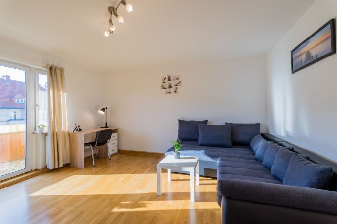 Schöne, helle 3 Zimmerwohnung mit Echtholzparkett, Granitbad und Klimaanlage-komplett möbliert, 2 Schlafzimmer, Kleiderschrank, Kommode, Nachttisch sowie separater voll ausgestatteter Einbauküche mit Herd, Backofen, Kühlschrank, Mikrowelle, Spülmaschine.-Getrennter Abstellraum inkl Waschmaschine innerhalb der Wohnung-Absolut WG tauglich da beide Zimmer vom Flur zugänglich und im Schnitt sehr ähnlich. 4. von 4 Etagen, daher keine Lärmbelästigung oder Schritte von Nachbarn von oben- leider kein Aufzug vorhanden! This recently renovated, fully furnished 3 bedroom apartment welcomes you with a fully equipped kitchen including all common utensils such as fitted kitchen with dishwasher, pots, pans, plates, glasses, cutlery and a small and a large bedroom with each bed, wardrobe, bedside tables, etc, and a spacious Living room with a huge sofa bed, work desk with desk and a west-facing balcony. Another extra bed is available if required. Both bedrooms are facing the garden and turned away from the street, so you can escape the traffic noise in Berlin as much as possible. Own small separate storage room for washing machine inside the apartment. Real wood parquet in living and bedrooms, as well as in the hallway. Air conditioning in the living room. Double glazing throughout the apartment. If needed, furniture can be adapted to your needs. Tempelhof nähe Tempelhofer Damm. Direkte Verbindung zur Friedrichstraß, Stadtmitte und Kreuzberg. Close to metro station leading straight to city centre, eg Kreuzberg, Mitte, Friedrichstraße