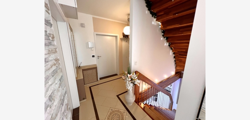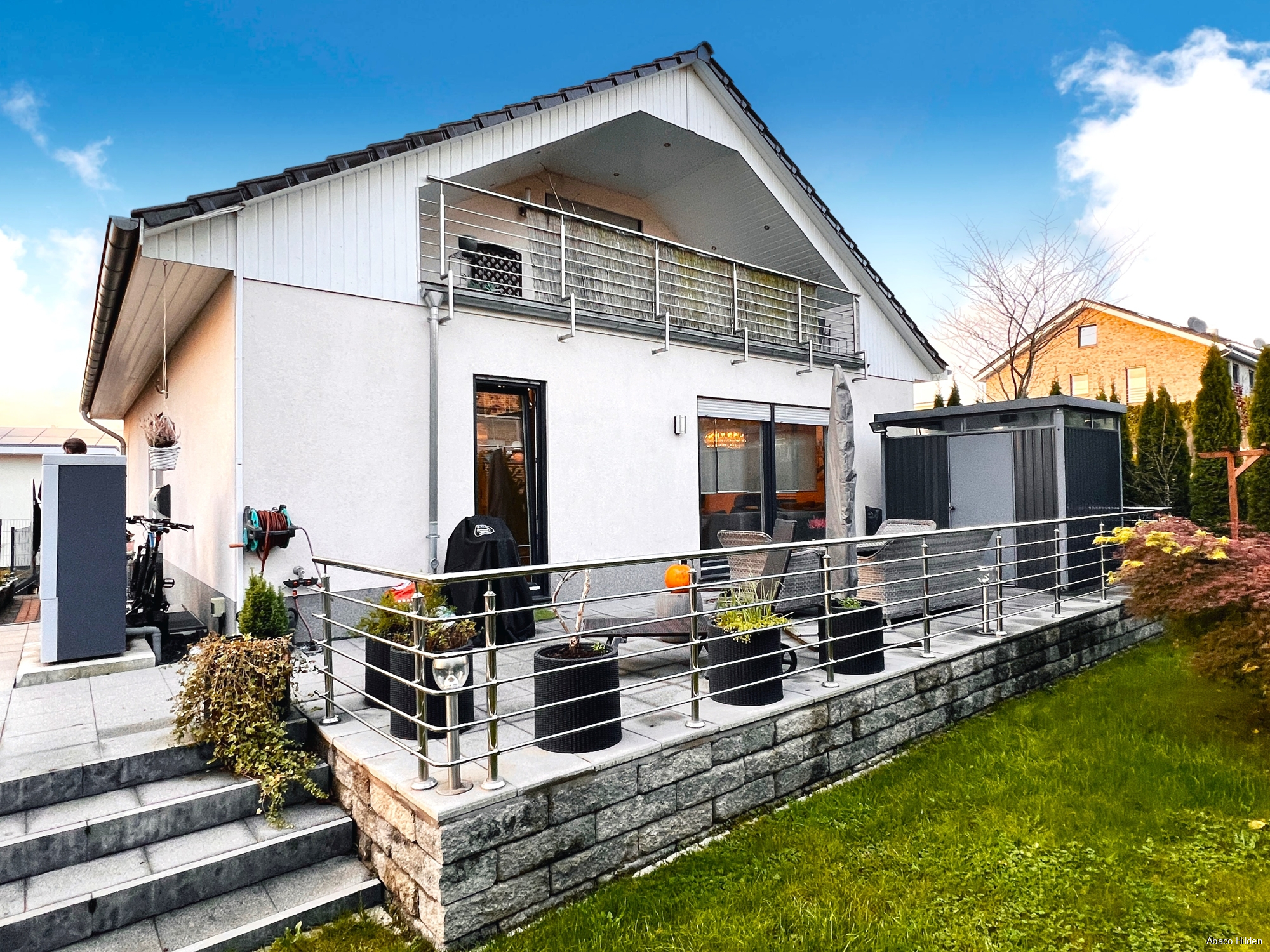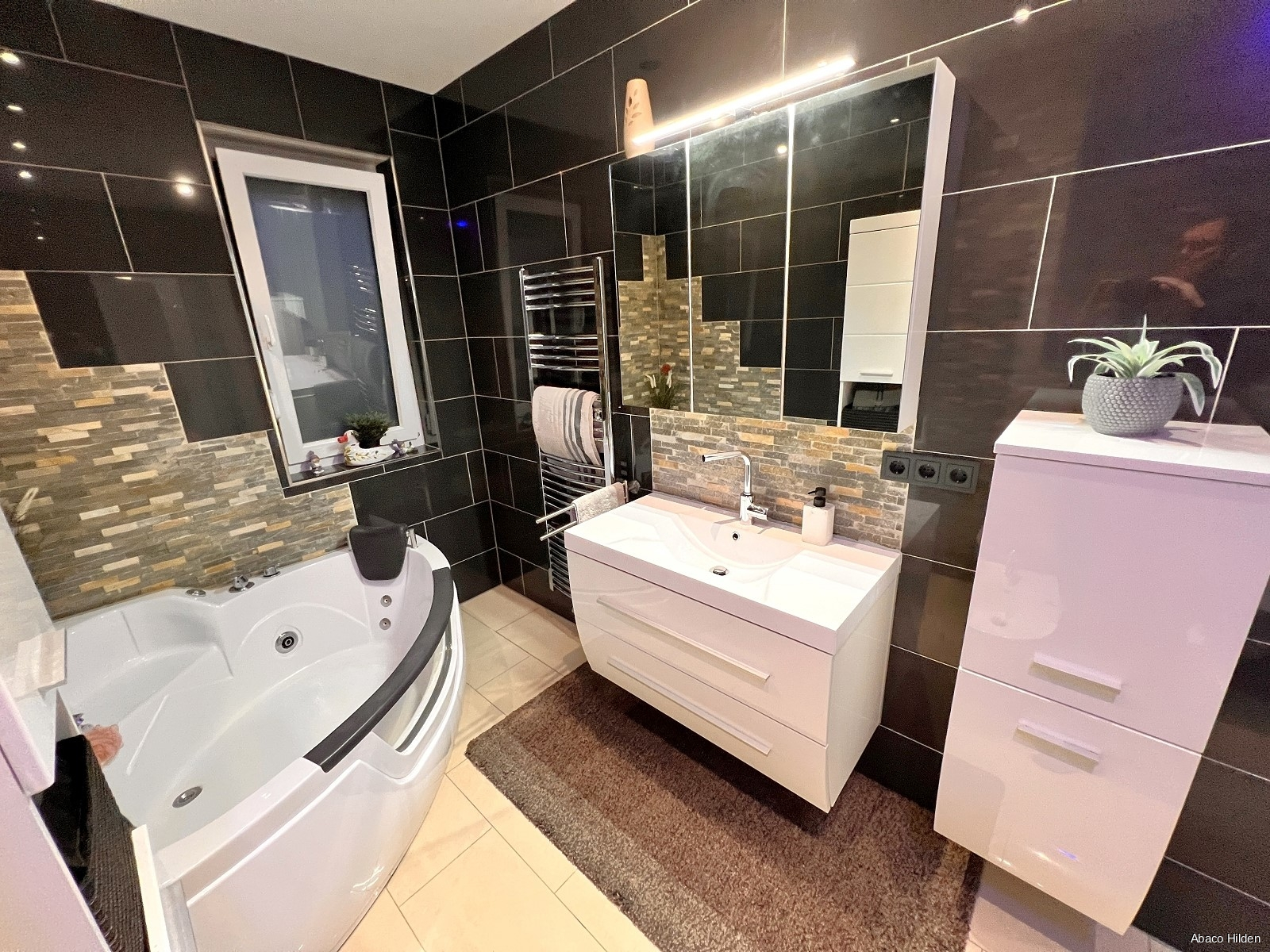Entdecken Sie dieses außergewöhnliche Zweifamilienhaus mit Einliegerwohnung in Wülfrath! Diese eindrucksvolle Immobilie aus dem Jahr 2014 überzeugt durch ihren gepflegten Zustand und eine gehobene Ausstattung. Auf einem Grundstück von 454 m² erstreckt sich das Haus über drei Etagen und bietet eine Wohnfläche von insgesamt 252 m² sowie eine Nutzfläche von 22 m². Mit insgesamt 8 Zimmern, darunter 4 moderne Badezimmer, bietet dieses Haus in drei Wohnungen viel Platz und Komfort. Die ca. 91 m² große Erdgeschosswohnung ist bezugsfrei und über einen separaten seitlichen Hauseingang links vom Haus zu erreichen. Herzstück des Hauses ist die ca. 112 m² große vom Eigentümer selbst bewohnte Hauptwohnung, die zum Garten hin ebenerdig verläuft. Die Wohnung erreicht man über eine Außentreppe und einem seitlichen Eingang rechts am Haus. Das Highlight der Hauptwohnung ist die offene, stilvolle Einbauküche, die das Kochen zum Vergnügen macht. Der angrenzende Wohnbereich erstreckt sich auf die herrliche Gartenterrasse, die perfekt für entspannte Stunden im Freien geeignet ist. Zudem lädt ein Balkon zu einem ruhigen Rückzugsort ein, von dem aus man die Aussicht genießen kann. Die zurzeit vermietete ca. 49 m² große Einliegerwohnung im Dachgeschoss ermöglicht flexible Nutzungsmöglichkeiten – ob zur Vermietung, als Büro, oder als zusätzlicher Wohnraum für die Familie, kann sie auch vollwertig in die Hauptwohnung integriert werden. Zögern Sie nicht, Ihre Traumimmobilie zu besichtigen und das Gefühl, nach Hause zu kommen, selbst zu erleben!Diese exklusive Immobilie besticht durch eine moderne, zeitgemäße Ausstattung. In der Hauptwohnung befindet sich eine moderne Einbauküche mit hochwertigen Küchengeräten namhafter Hersteller. Ein großzügiger, heller Wohn-/Essbereich und drei geräumige Schlafzimmer bieten höchsten Wohnkomfort. Zwei luxuriös ausgestattete Badezimmer, eins mit Whirlpool Badewanne, Waschtischmöbel, Wand-WC und Bidet, das andere mit ebenerdiger Dusche laden zum Entspannen ein. Die Böden sind in allen Räumen mit edlen Fliesen ausgestattet. Alle Fenster sind 3-fach Isolierverglast, mit elektrischen Rollläden. Tolle Beleuchtungskonzepte runden den eindrucksvollen Stil dieser Wohnung ab. Für Ihre Fahrzeuge stehen sowohl eine geräumige Garage mit automatischem Tor und zusätzlichem Stauraum als auch ein praktischer Stellplatz im Freien zur Verfügung. Die innovative Wärmepumpenheizung, ergänzt durch eine Fußbodenheizung, sorgt für effizientes und umweltbewusstes Heizen, wodurch hoher Wohnkomfort das ganze Jahr über gewährleistet ist.Das angebotene Zweifamilienhaus befindet sich in der charmanten Stadt Wülfrath im Bergischen Land. Diese ruhige und dennoch zentrale Lage bietet eine ideale Mischung aus städtischem Komfort und naturnaher Erholung. Wülfrath überzeugt durch seine hervorragende Verkehrsanbindung, die es ermöglicht, umliegende Städte schnell und bequem zu erreichen. Die Region ist bekannt für ihre malerischen Landschaften und zahlreichen Freizeitmöglichkeiten, die sowohl Naturfreunde als auch Familien begeistern. In nächster Nähe finden Sie alle wichtigen Einrichtungen des täglichen Bedarfs, wie Einkaufsmöglichkeiten, Schulen und medizinische Versorgung. Öffentliche Verkehrsmittel sind ebenfalls gut erreichbar, was eine einfache und bequeme Mobilität gewährleistet. Die Nachbarschaft zeichnet sich durch einen freundlichen und einladenden Charakter aus, was sie zu einem idealen Wohnort für Jung und Alt macht. Die Kombination aus einer attraktiven Wohnqualität, der Nähe zur Natur und der ausgezeichneten Erreichbarkeit macht diesen Standort besonders begehrenswert. Ob für Eigenbedarf oder als Kapitalanlage, diese Lage bietet Ihnen eine wertstabile und zukunftssichere Investition.**Moderne Immobilie mit effizienter Energienutzung** Willkommen in Ihrem neuen Zuhause! Diese beeindruckende Immobilie besticht nicht nur durch ihr modernes Design, sondern auch durch eine fortschrittliche und nachhaltige Energienutzung. Das Gebäude wurde im Jahr 2014 erbaut und erfüllt damit aktuelle Standards sowohl in Bauweise als auch in energetischer Effizienz. Die Energieversorgung erfolgt über eine umweltfreundliche Luft/Wasser-Wärmepumpe, die für eine effiziente und kostengünstige Heizlösung sorgt. Diese Immobilie bietet Ihnen die Möglichkeit, komfortabel und zeitgemäß zu wohnen, während Sie gleichzeitig Ihren ökologischen Fußabdruck reduzieren. Die Hauptwohnung ist verfügbar nach Vereinbarung und bietet eine einmalige Gelegenheit, in einer der begehrtesten Lagen von Wülfrath zu wohnen. Die vermietete 49 m² große DG-Wohnung erzielt eine monatliche Kaltmiete in Höhe von 500 €. Zuletzt war die bezugsfreie 91 m² große EG-Wohnung inkl. 2 PKW-Stellplätzen für 1.120 € vermietet (Kaltmiete). Für weitere Informationen oder eine Besichtigung stehen wir Ihnen gerne zur Verfügung. Machen Sie den ersten Schritt in Richtung Ihres Traumhauses!