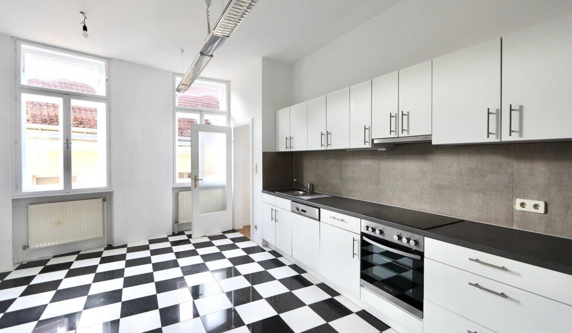 Die 3-Zimmer-Wohnung mit zusätzlichem Küchenbereich befindet sich im dritten Stockwerk mit Aufzug und erstreckt sich über ungefähr 75,5 Quadratmeter. Sie präsentiert sich in einem sehr gepflegten Zustand. Die Wohnung ist auch optimal als WG geeignet. Alle Zimmer inkl. Küche und Bad sind getrennt begehbar. Die Ausrichtung der Immobilie zum Innenhof im Osten. Die Raumaufteilung ist wie folgt: - Ein heller Eingangsbereich - Ein einladendes Wohnzimmer - Ein Schlafzimmer mit integriertem Schrank - Ein großzügiger Küchen- und Essbereich mit einer komplett eingerichteten Einbauküche, die einen freistehenden Kühlschrank mit Gefrierfach, einen Geschirrspüler, einen Elektroherd, einen Backofen und eine Spüle umfasst - Ein Badezimmer mit Badewanne - Ein separates WC - Ein Abstellraum Die Deckenhöhe der Wohnung liegt bei etwa 3,10 Metern. Ausgestattet ist die Wohnung mit einer Gasetagenheizung, Holzkastenfenstern und Parkettböden. Zur Wohnanlage gehören ein geräumiger Fahrradabstellraum, eine Waschküche sowie ein schöner Gemeinschaftsgarten. **Konditionen:** Die monatliche Warmmiete beläuft sich auf 975,30 Euro Der Mietbeginn ist ab sofort möglich. Die Kaution beträgt 2.430 Euro. Die charmante Altbau-Wohnung befindet sich im Vorderhaus in Schöneberg in unmittelbarer Nähe des Alazienkiezes (3min zum S Bhf Julius-Leber-Brücke).