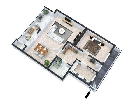 Das Herzstück der Wohnung ist der geräumige Wohn- und Essbereich mit bodentiefen Balkontüren und direktem Zugang zur großen, überdachten Loggia in Südausrichtung. Hier genießen Sie Sonne, frische Luft und den Blick ins Grüne – perfekt geschützt durch eine große Markise. Ein abschließbarer Abstellschrank bietet zusätzlichen Stauraum.