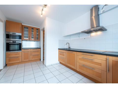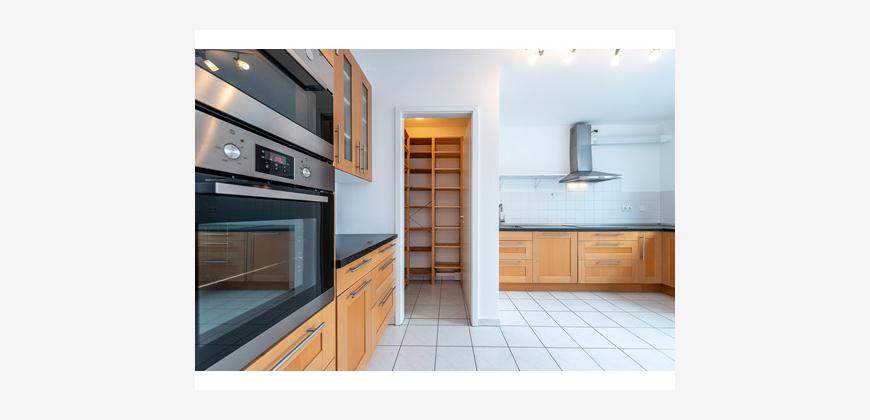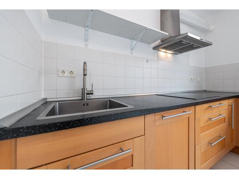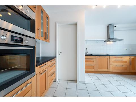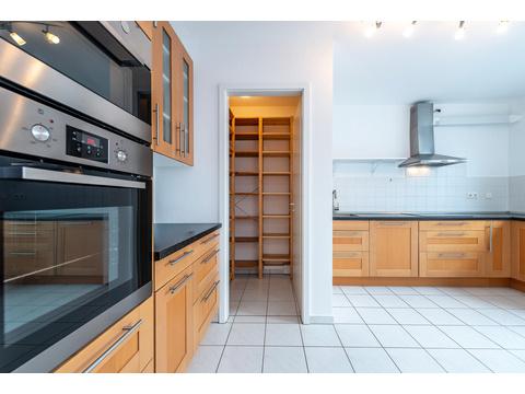 Die vorhandene Einbauküche ist hochwertig ausgestattet und bietet ideale Voraussetzungen für ambitionierte Hobbyköche. Eine angrenzende Speisekammer sorgt für zusätzlichen Stauraum und unterstreicht die durchdachte Raumplanung. Auch von der Küche aus besteht ein direkter Zugang zur Terrasse, was den Wohnkomfort zusätzlich erhöht.